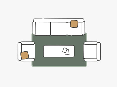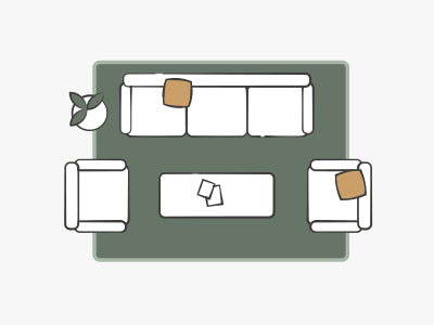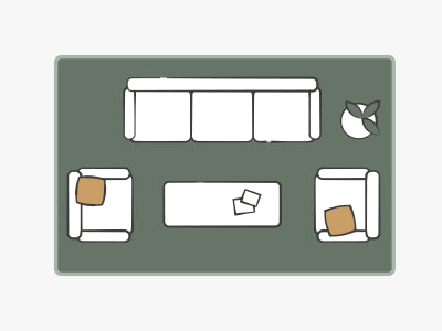 A 5'x7' rug is usually large enough to accommodate a small seating area with two chairs and a sofa. We recommend that the front legs of your furniture be on the rug to avoid it seeming as if it's floating. If you want to visually enlarge a small living area, choose lighter rug colors.