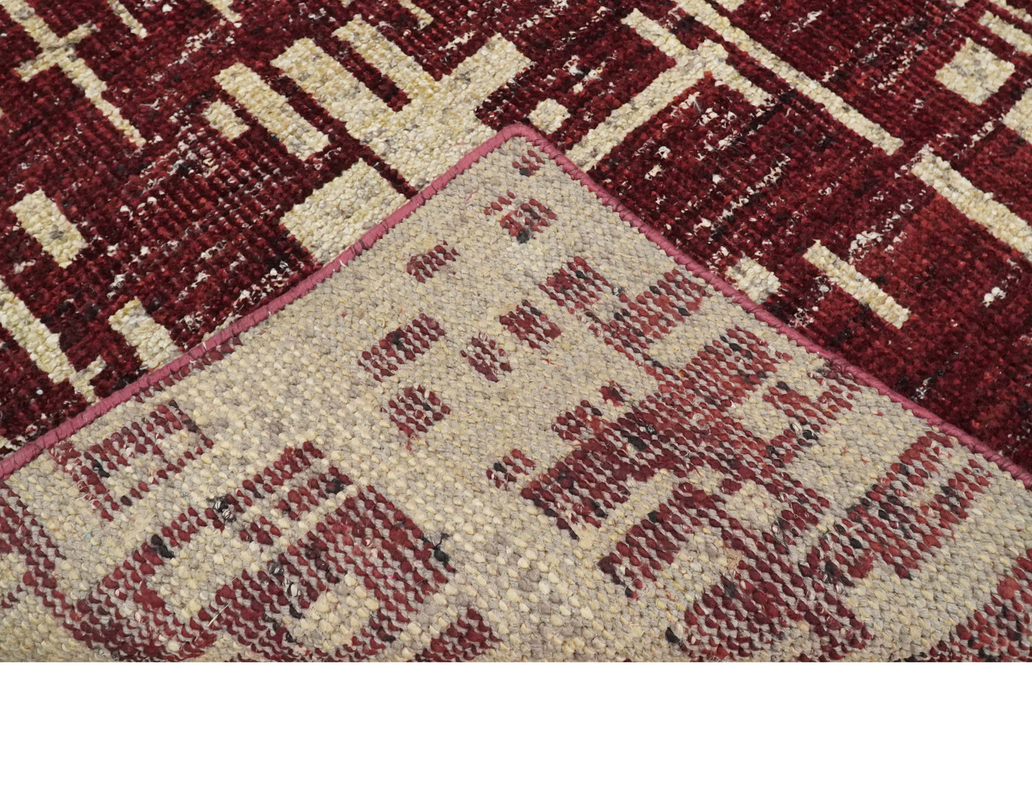 4x6 Hand Knotted Beige and Maroon Modern Abstract Contemporary Recycled Silk Area Rug | OP64