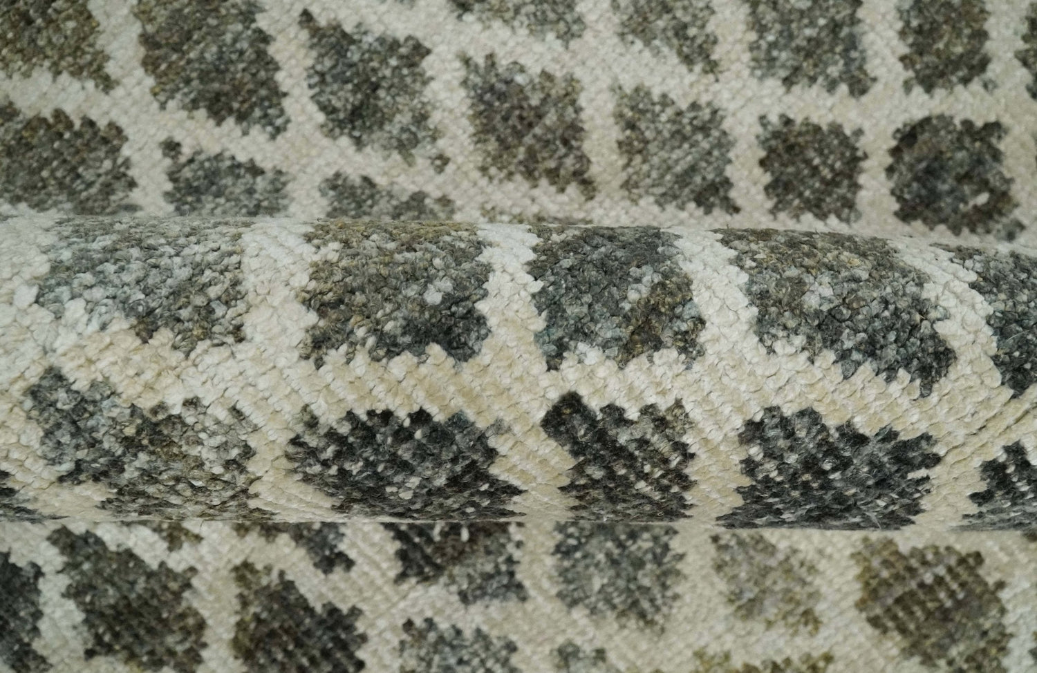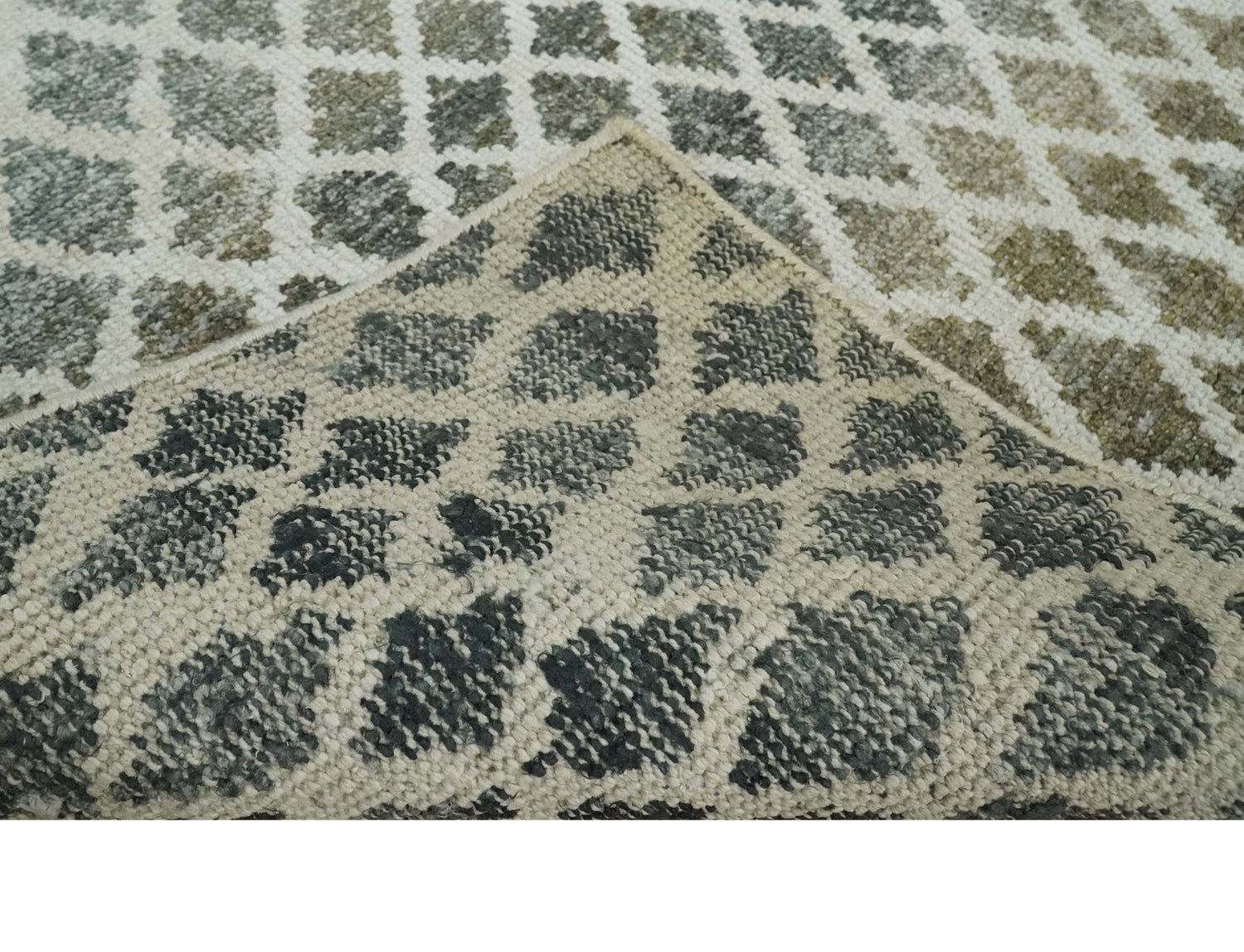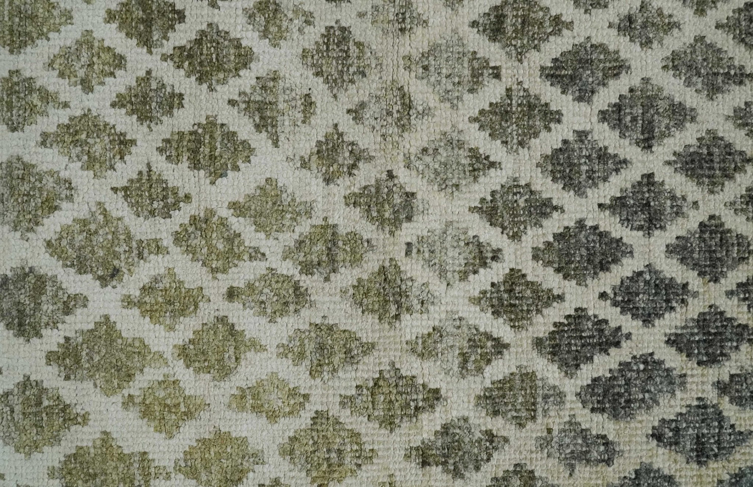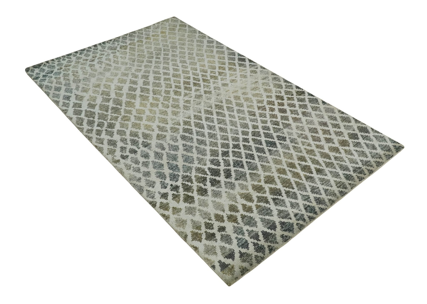 5x8 Hand Knotted Beige, Charcoal and Olive Modern Diamond Geometric Contemporary Recycled Silk Area Rug | OP87