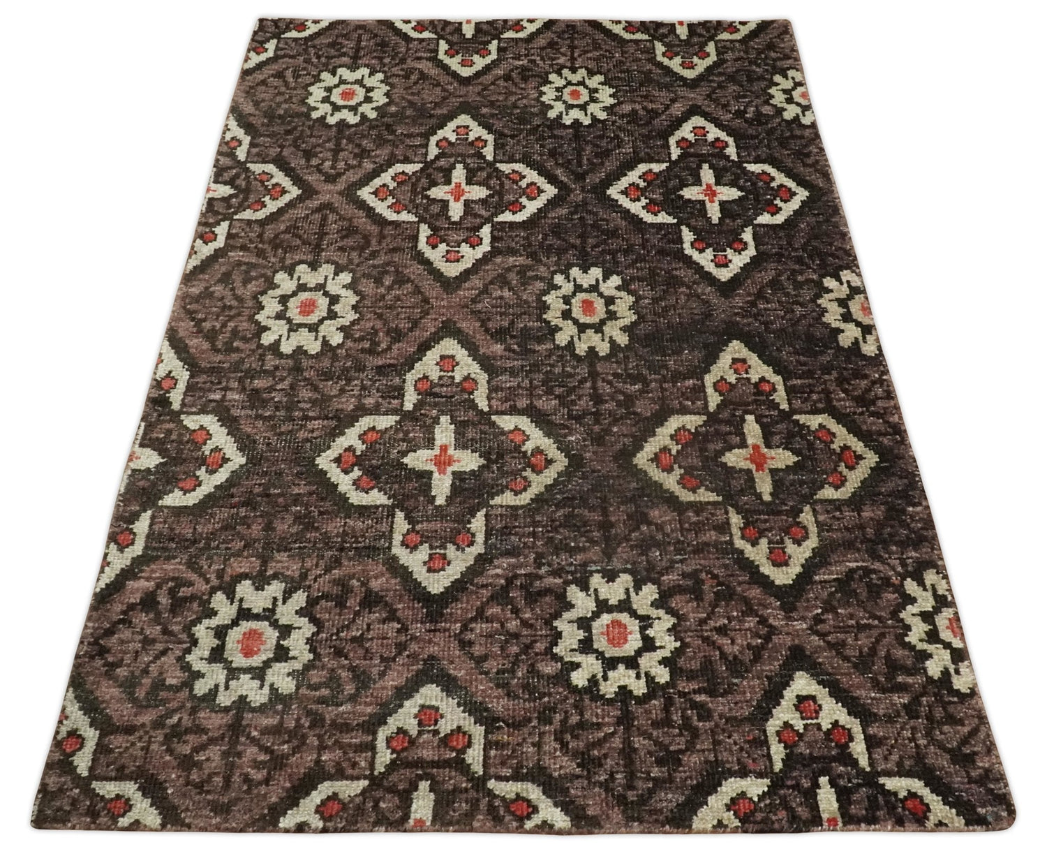 5x8 Hand Knotted Brown, Beige and Rust Antique Persian Style Contemporary Bamboo Silk Area Rug | OP69