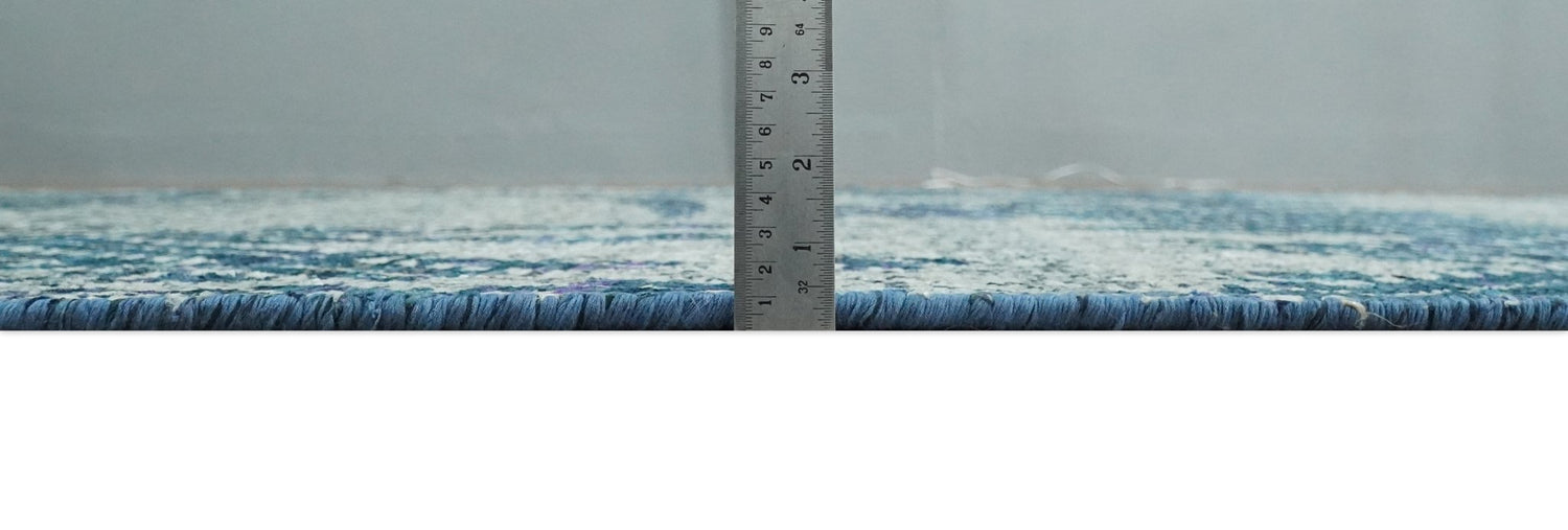 5x8 Hand Knotted Ivory, Blue and Teal Modern Geometric Contemporary Recycled Silk Area Rug | OP102