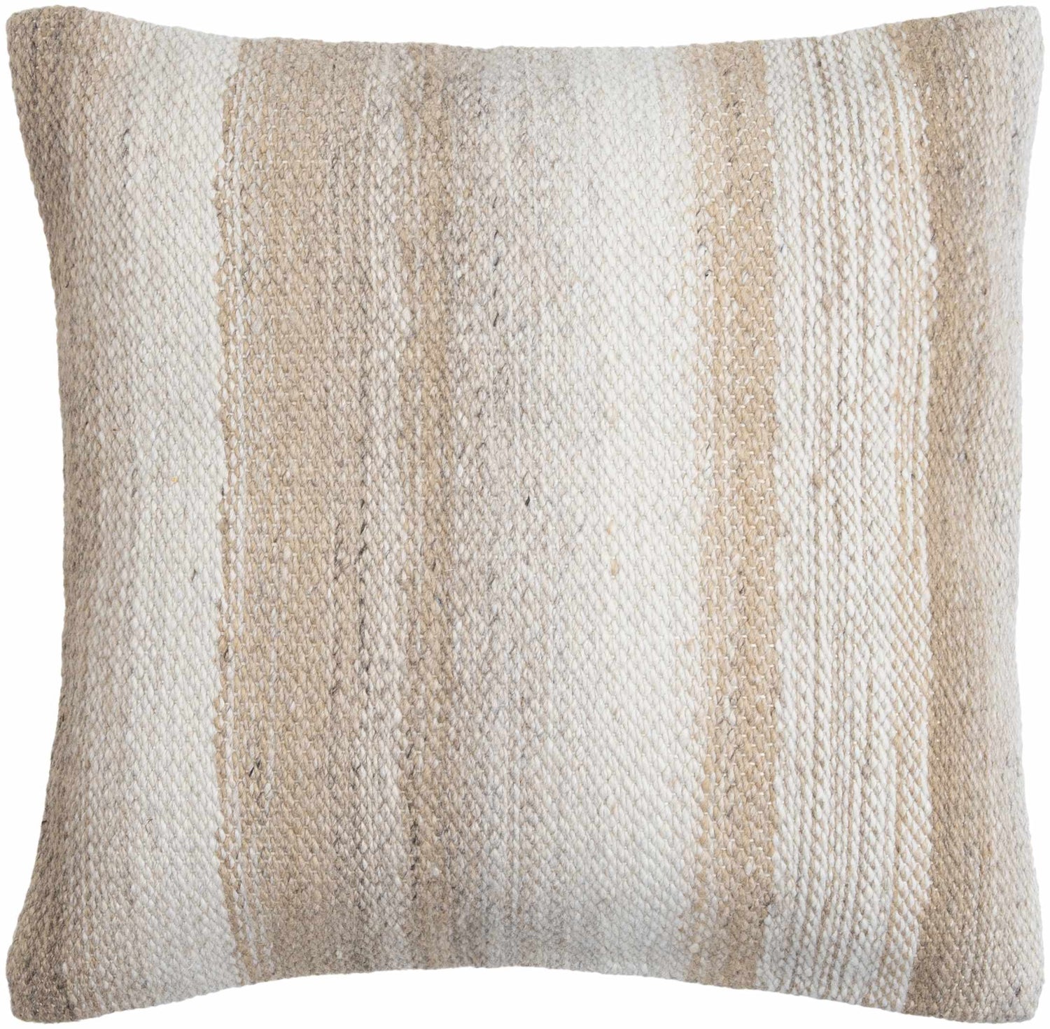 Creval Cream and Tan Woven Stripe Cottage Farmhouse Recycled PET Outdoor Accent Pillow