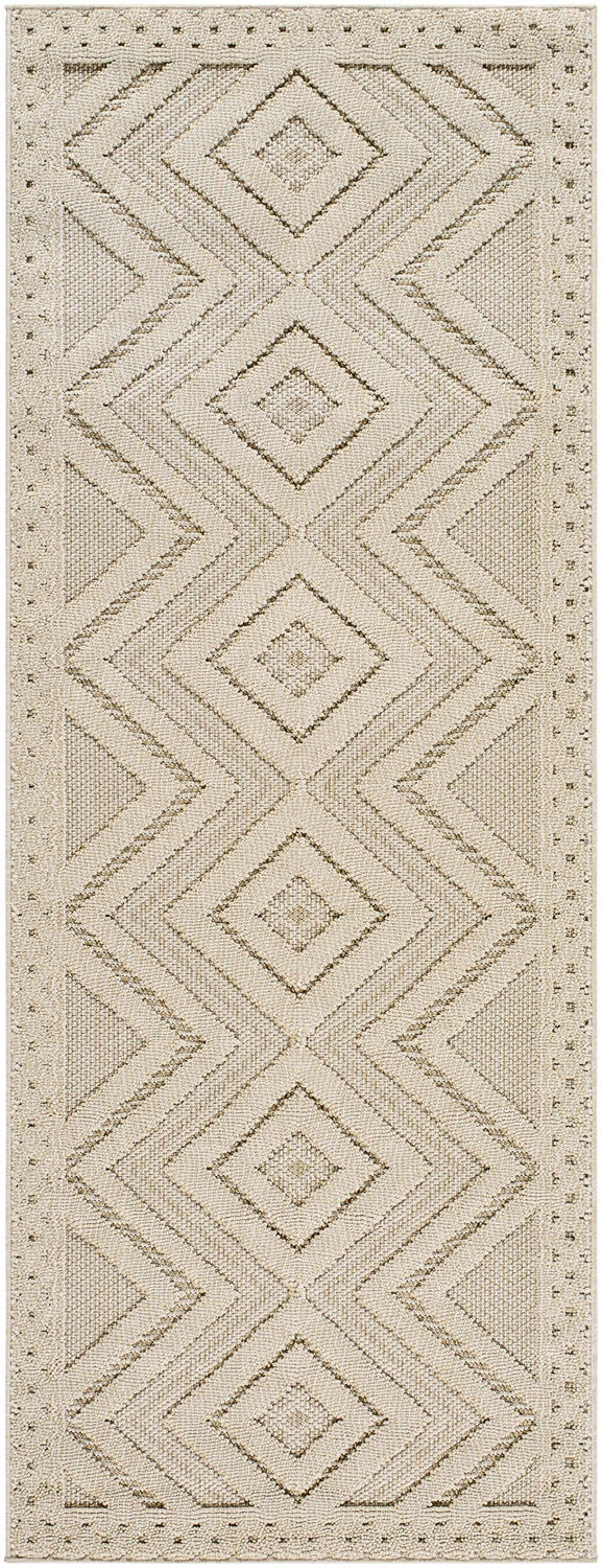 The Aimee Area Rug is the perfect choice for your Scandinavian Modern decor. Made in Turkey from durable polypropylene, this rug is designed to last through even high traffic areas and outdoor settings. With a medium pile height, it's easy to clean and maintain?just hose off with mild detergent when needed! Add a rug pad for extra cushioning and protection, and enjoy the beautiful design of this piece for years to come.