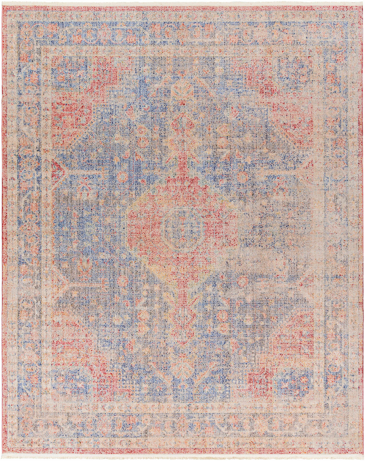 Experience the warmth and comfort of this updated traditional area rug. This beautiful machine woven rug, made from polyester, is designed to last in any high traffic area. Its medium pile gives it a plush feel that will add an inviting atmosphere to your living space. The fringe adds texture and character for a truly unique look. With proper care, this piece will stay looking great for years to come - spot clean with mild detergent as needed. For optimal performance, use with a rug pad (not included). Crafted in Turkey, this piece will bring timeless beauty to your home!