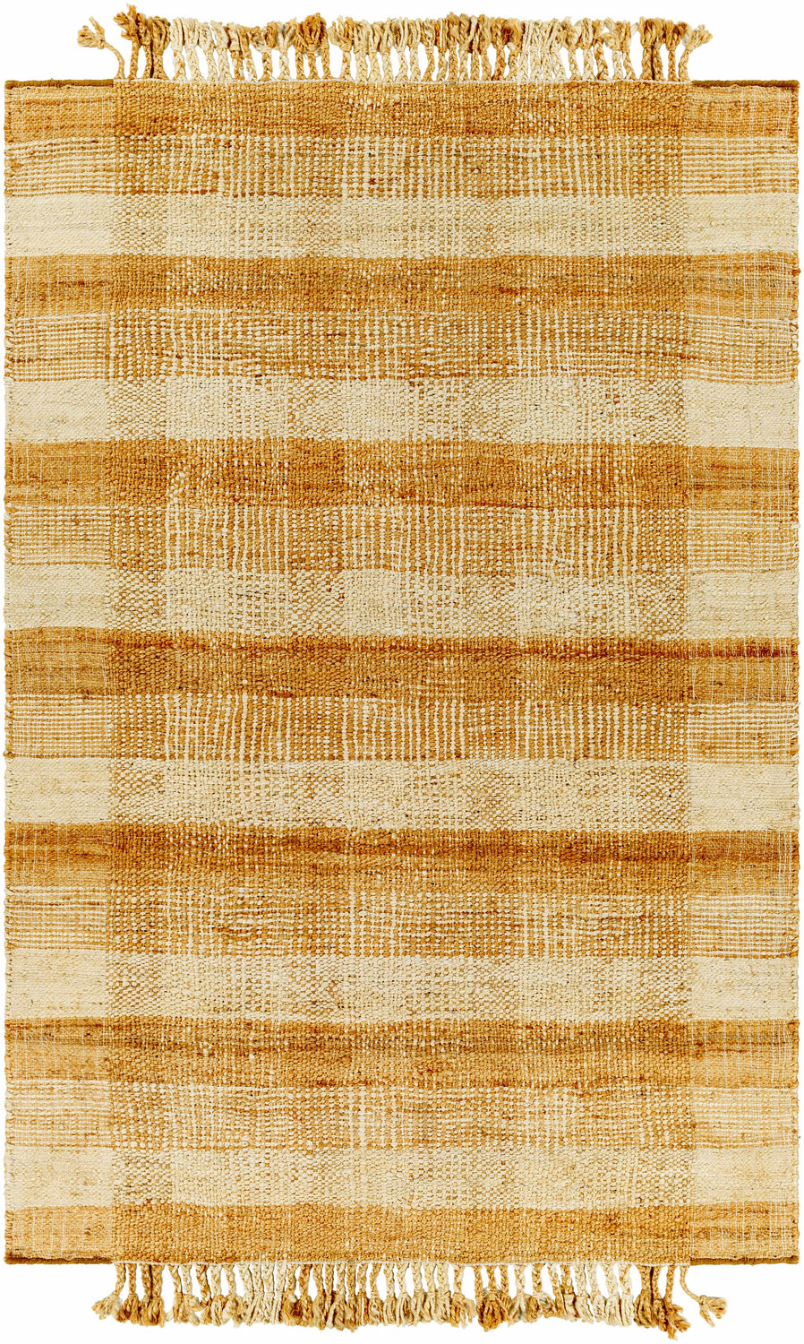 Welcome the charming farmhouse cottage style into your home with the Alara Area Rug collection's hand-woven rug. This unique piece is not just a rug, but an infusion of traditional artistry from India, meticulously handcrafted from Jute to bring a touch of nature into your living space. The fringe detail adds an extra dash of rustic appeal that complements any decor. To maintain its shape and extend its longevity, we recommend pairing this no-pile rug with a rug pad. Bring home the Alara Area Rug to create a cozy and inviting atmosphere!