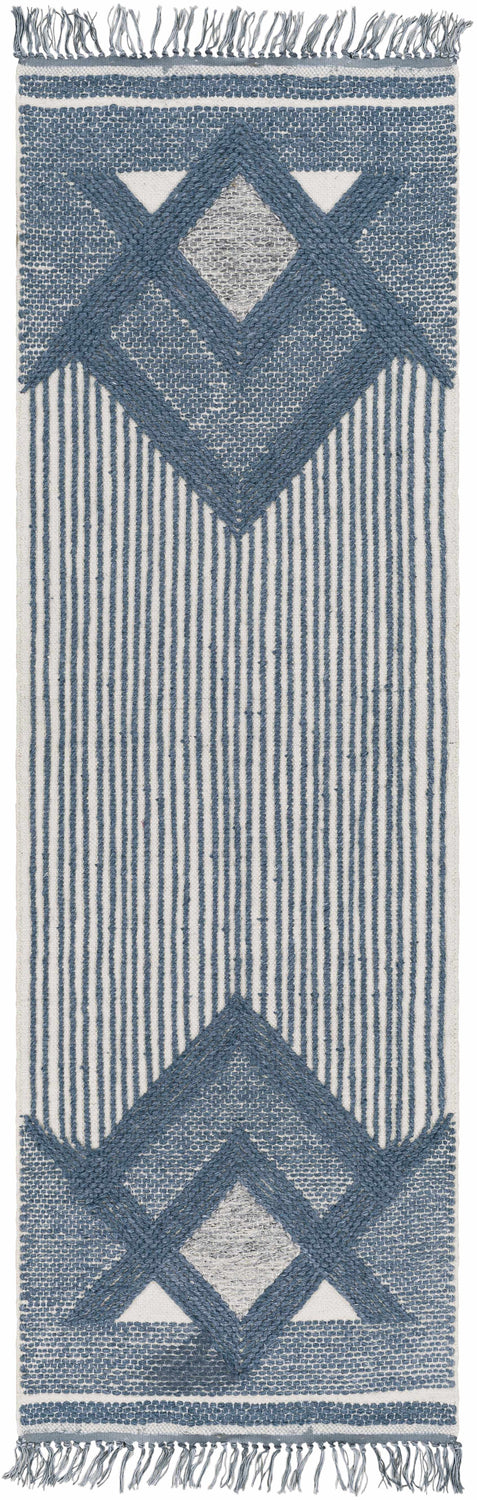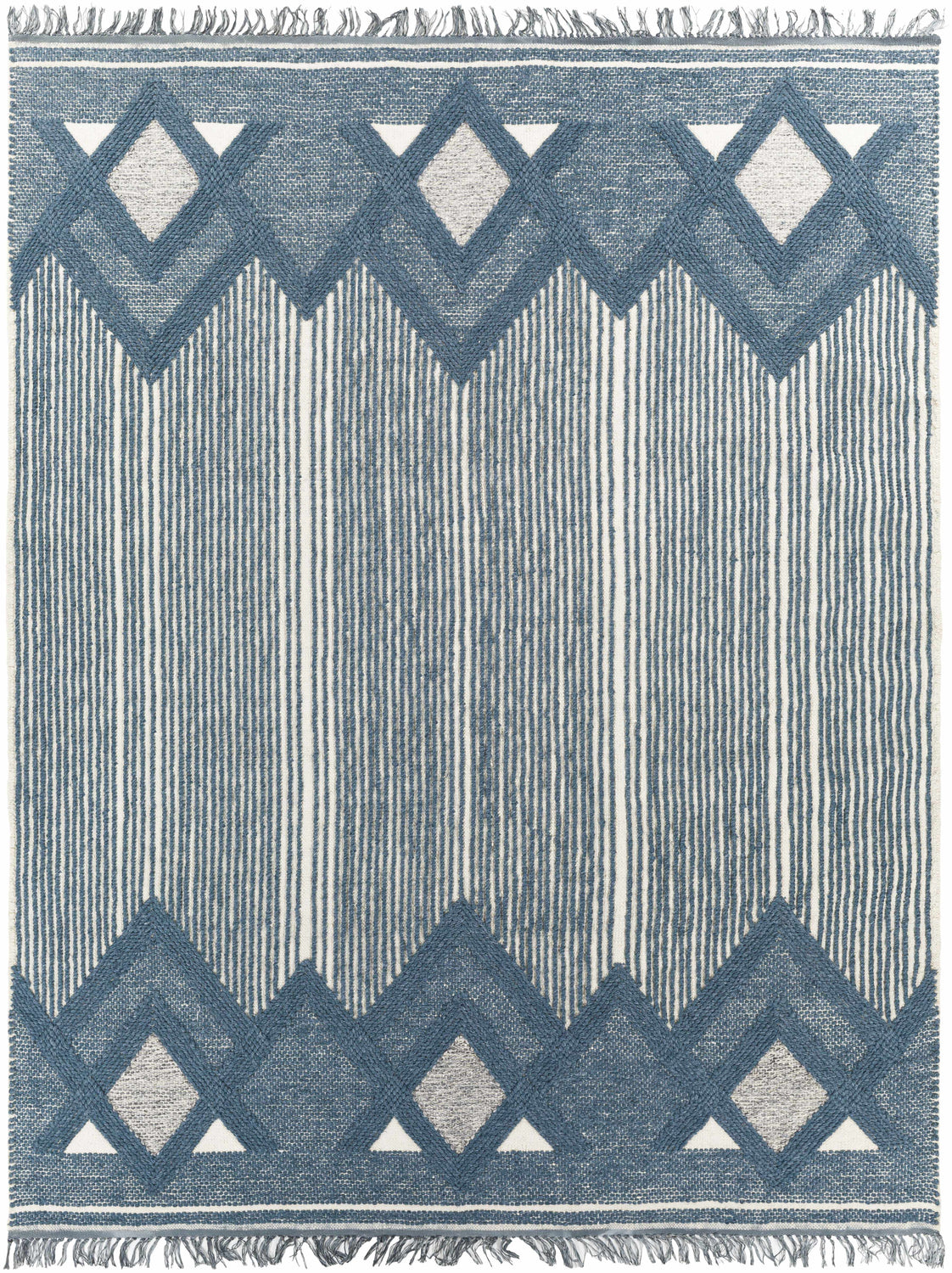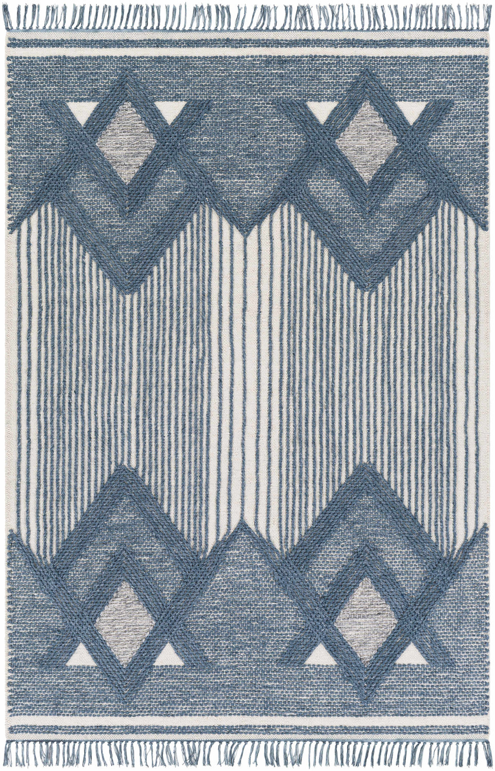 The Aldbourne Blue Tassel Flatweave Wool Rug Collection features compelling global inspired designs brimming with elegance and grace! The perfect addition for any home, these pieces will add eclectic charm to any room! The meticulously woven construction of these pieces boasts durability and will provide natural charm into your decor space. Made with Wool, Polyester in India, and has Low Pile.
