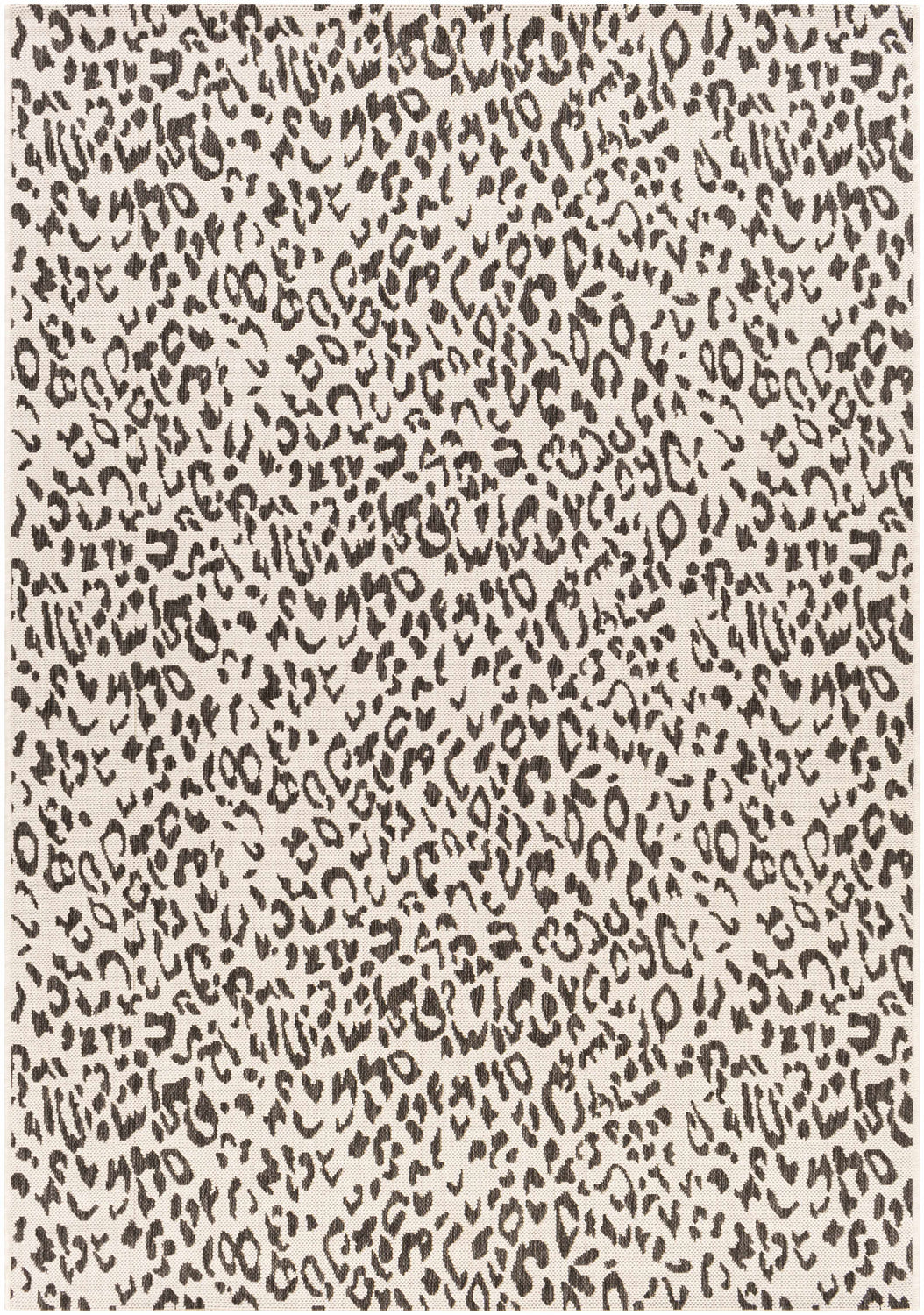Introducing the Alderbury White Leopard Print Area Rug, perfect for any modern minimalist space! This stylish piece is machine woven in Turkey from high-quality polypropylene, making it an incredibly durable option that will stand up to even heavy foot traffic. The no pile construction ensures a smooth surface and makes this area rug ideal for outdoor use. Plus, its care instructions are so easy - just hose off with water and hang to dry! Add a rug pad underneath for extra cushioning and protection. Create a cozy atmosphere in your home or patio with this modern area rug today!
