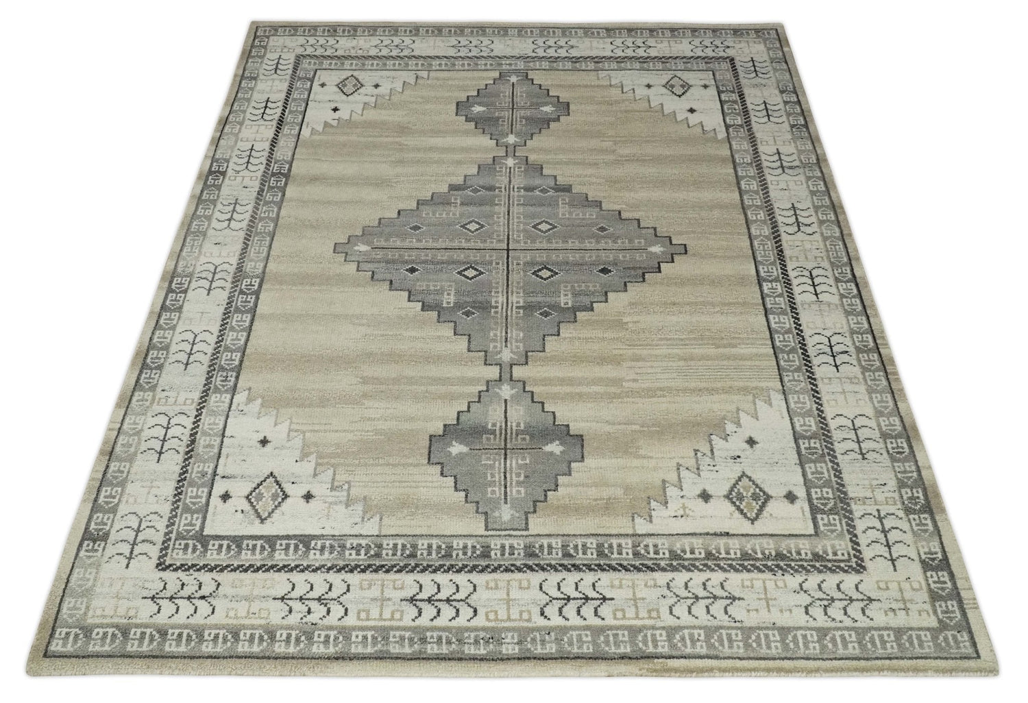 All Natural Wool Hand Knotted Gray , Beige and Ivory Traditional Heriz Serapi Multi Size wool Area Rug, Kids, Living Room and Bedroom Rug