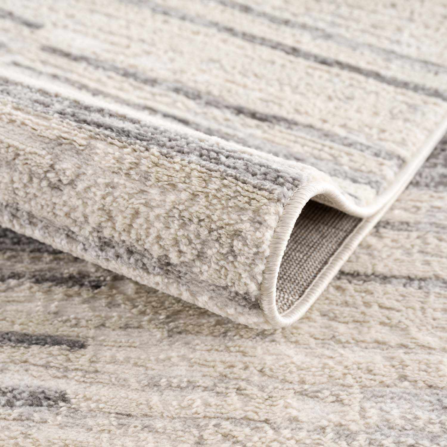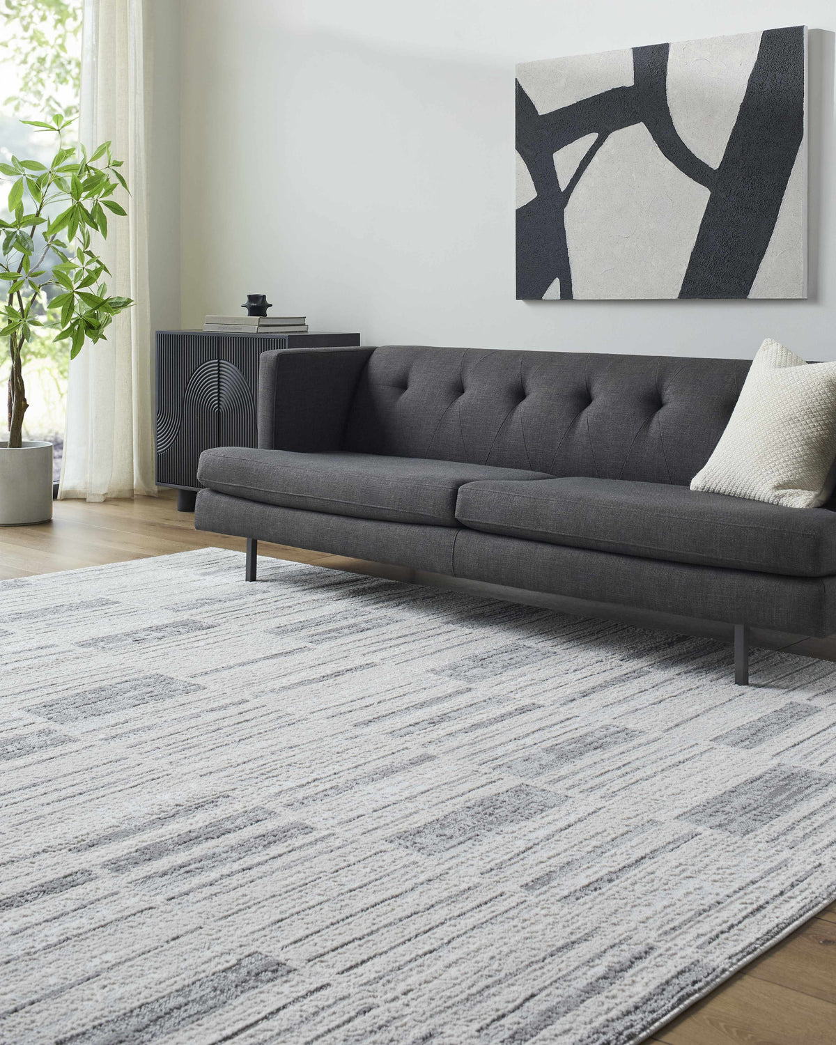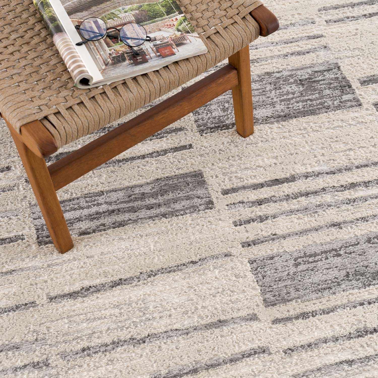 Introducing the Allete Broken-Striped Area Rug, a perfect blend of Mid-Century Modern style and practicality. Manufactured in Turkey, this rug boasts a machine-woven construction of polypropylene and polyester for enhanced durability, making it an excellent choice for high traffic areas in your home. It features a medium pile that provides an ideal balance between comfort underfoot and ease of maintenance. For longevity and to maintain its beautiful look, we recommend using this rug with a pad underneath and spot cleaning with mild detergent as needed. Add the Allete Broken-Striped Area Rug to your living space to create an inviting atmosphere with an effortless touch of modern style.