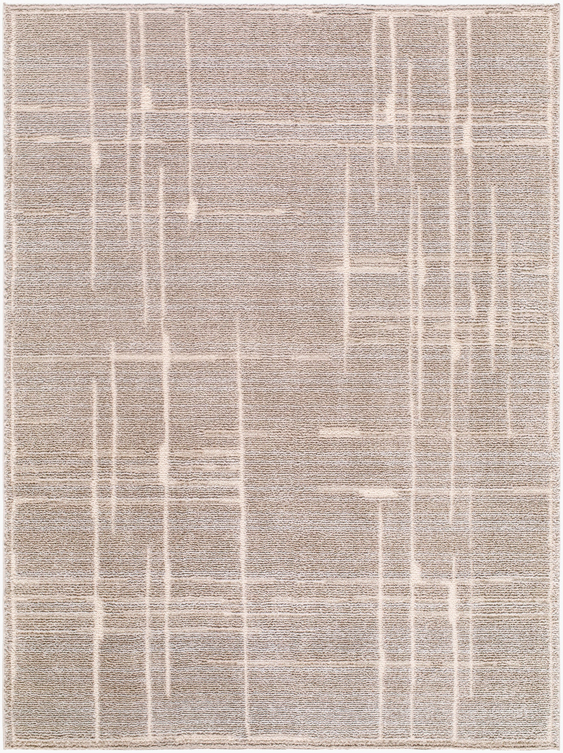 Warm taupe meets soft cream in this minimalist abstract rug — clean, modern lines that work with virtually any interior. Built tough in polypropylene for everyday living.