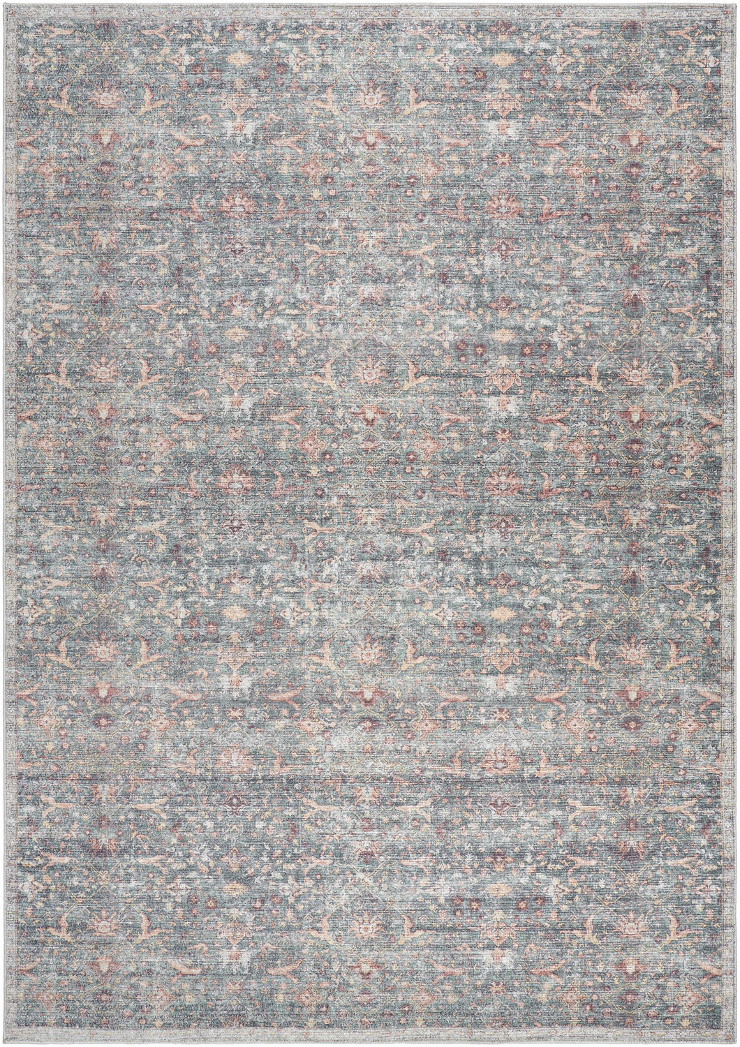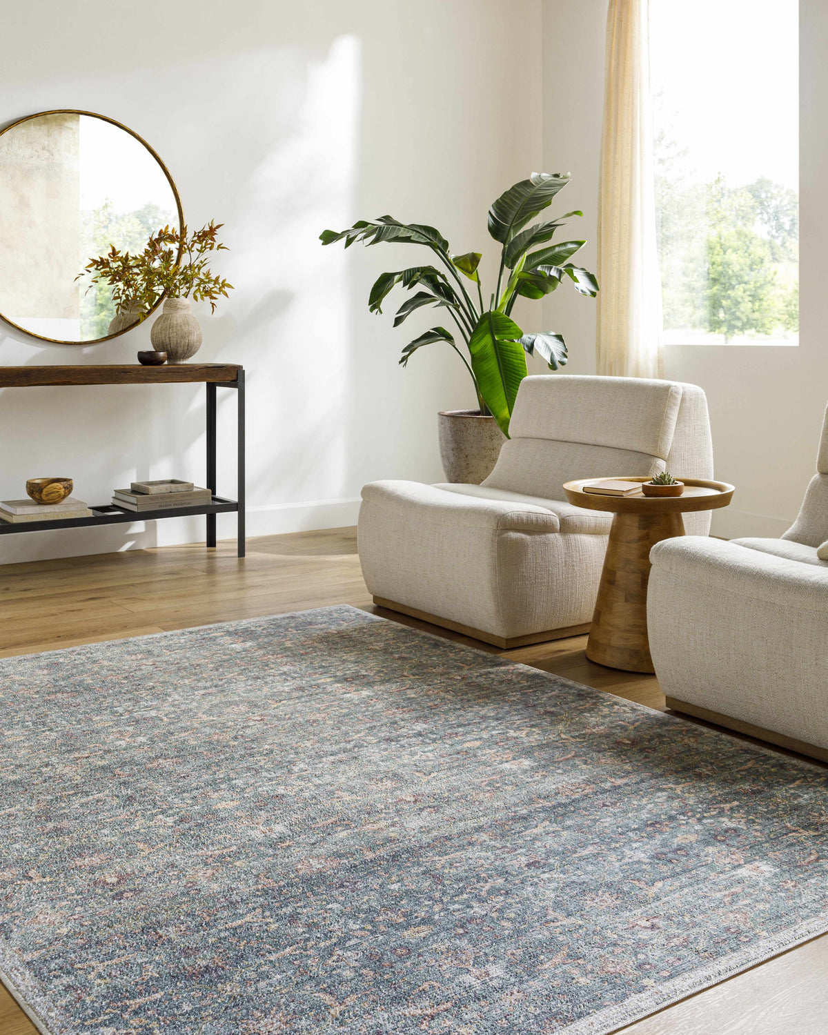 Introducing the Amasai Area Rug - Vivir x Livabliss Collection, an exquisite area rug born from the unique collaboration between Vivir and Livabliss. This updated traditional piece beautifully marries intricate floral and foliate motifs in a symmetric arrangement, encapsulated in a vintage-inspired transitional style that adds depth and character to any room. Its machine-woven construction from polyester ensures durability and a medium pile height that stands up well in high-traffic areas, making it both practical and stylish. The cool gray and slate blue tones are elegantly accented with touches of mocha and wheat, creating a serene yet sophisticated palette perfect for various decors. Crafted in Turkey, this rug features fringes that add an extra layer of elegance to its design. For longevity and comfort, the use of a rug pad is recommended, while spot cleaning with mild detergent takes care of any spills or stains, ensuring your area rug remains a centerpiece in your home for years to come.
