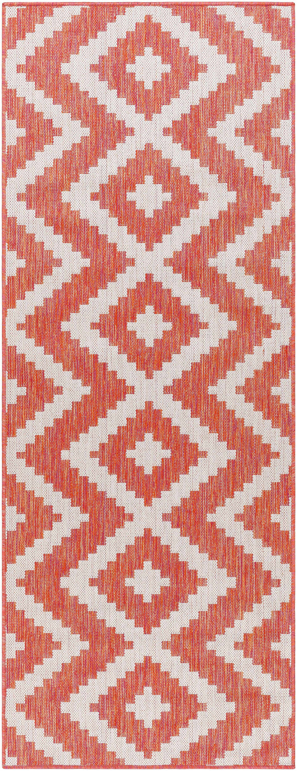 Our Anke Orange Area Rug is the perfect addition to any room in your home. It has a classic Moroccan Global style, giving your space an exotic, stylish touch. With its polypropylene construction and machine woven construction, this rug can withstand high traffic areas while still maintaining its quality look and feel. And with no pile, it's perfect for outdoor use and is safe from all elements! For extra cushioning and protection, we recommend using a rug pad underneath. To clean, simply hose off as needed for easy maintenance.