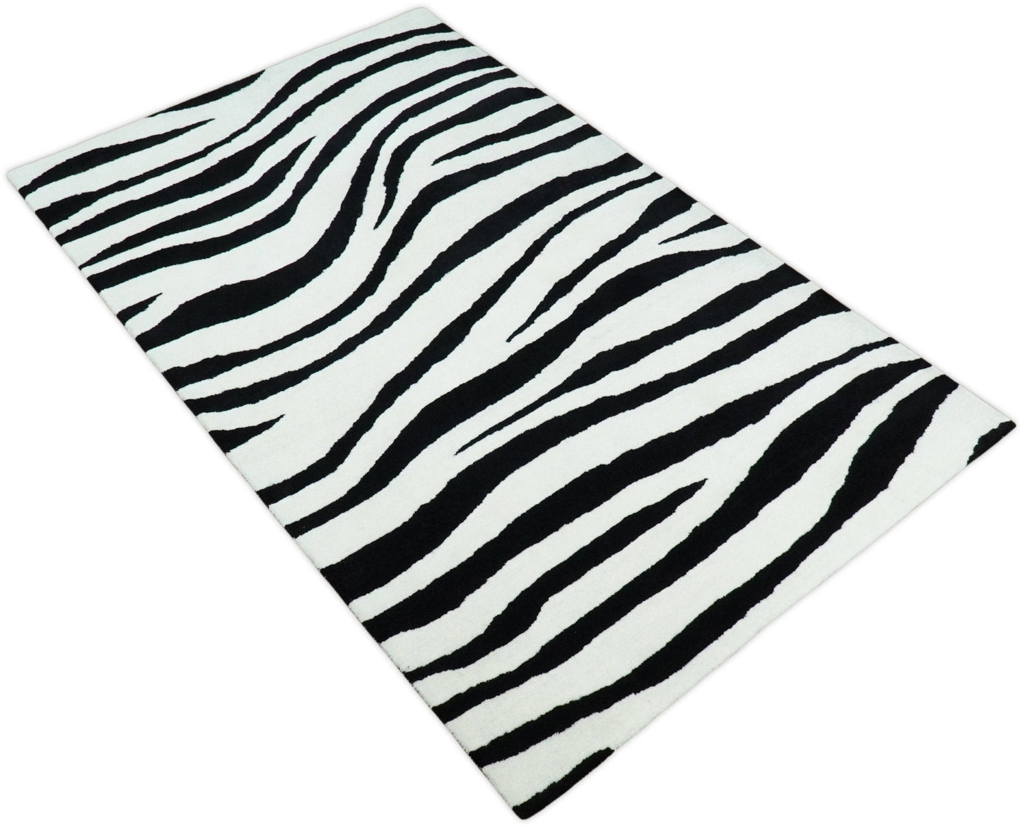 Antelope Rug, Hand Tufted Black and White Zebra Area Rug, Modern Wool Area Rug | ANI1