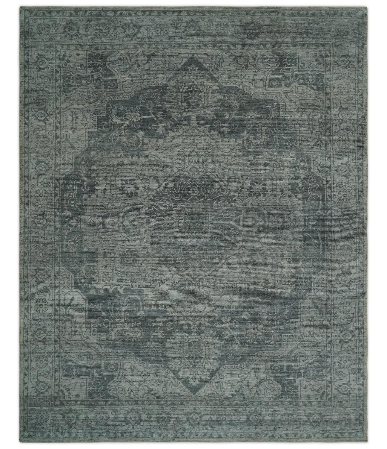 Antique Design Charcoal and Silver Traditional Medallion Custom Made wool Area Rug