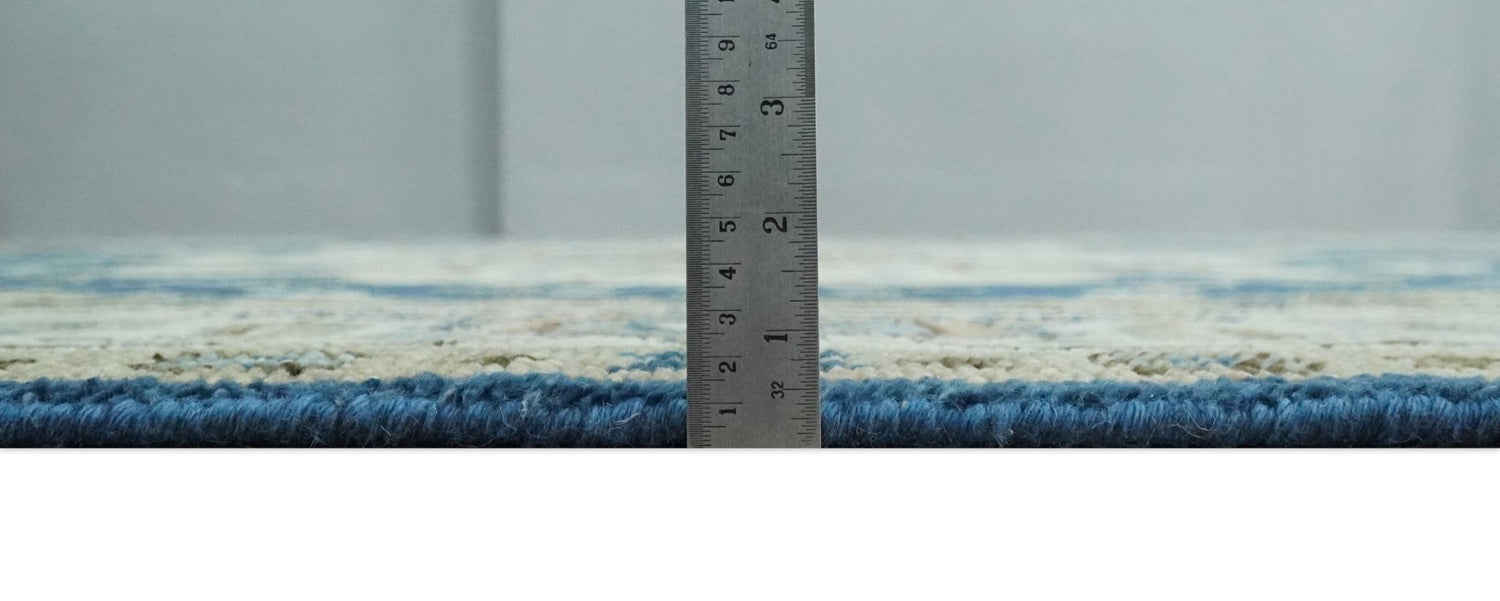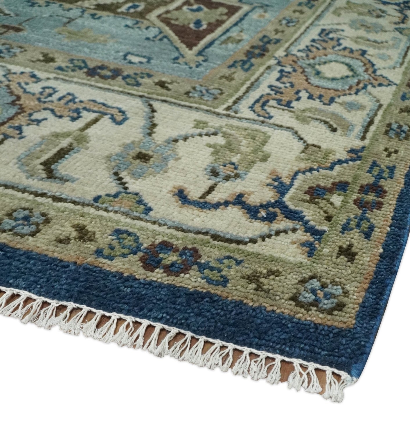 Antique look Blue, Ivory and Olive Traditional Heriz Medallion Multi Size wool Area Rug
