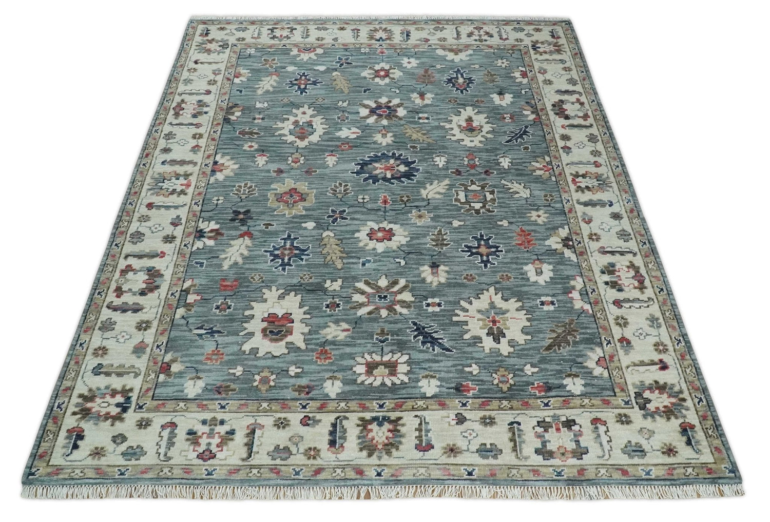 Antique look Gray Silver, Ivory and Beige Hand Knotted Traditional Oushak custom Made Wool Area Rug