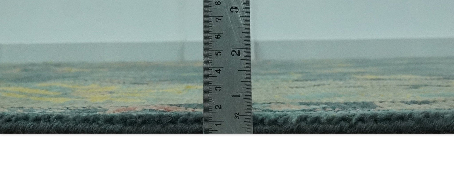 Expertly hand-crafted with a traditional Oushak design, this antique-look rug features a beautiful blend of teal and olive colors. Made with high-quality wool, it offers both durability and elegance. Perfect for adding a touch of sophistication to any room.