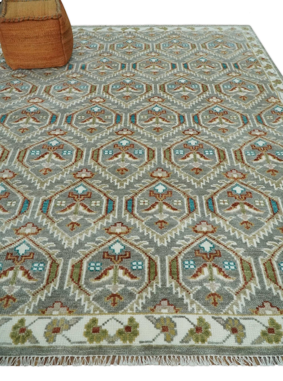 Antique look Traditional Hand Knotted Silver, Ivory and Rust Multi Size Area Rug