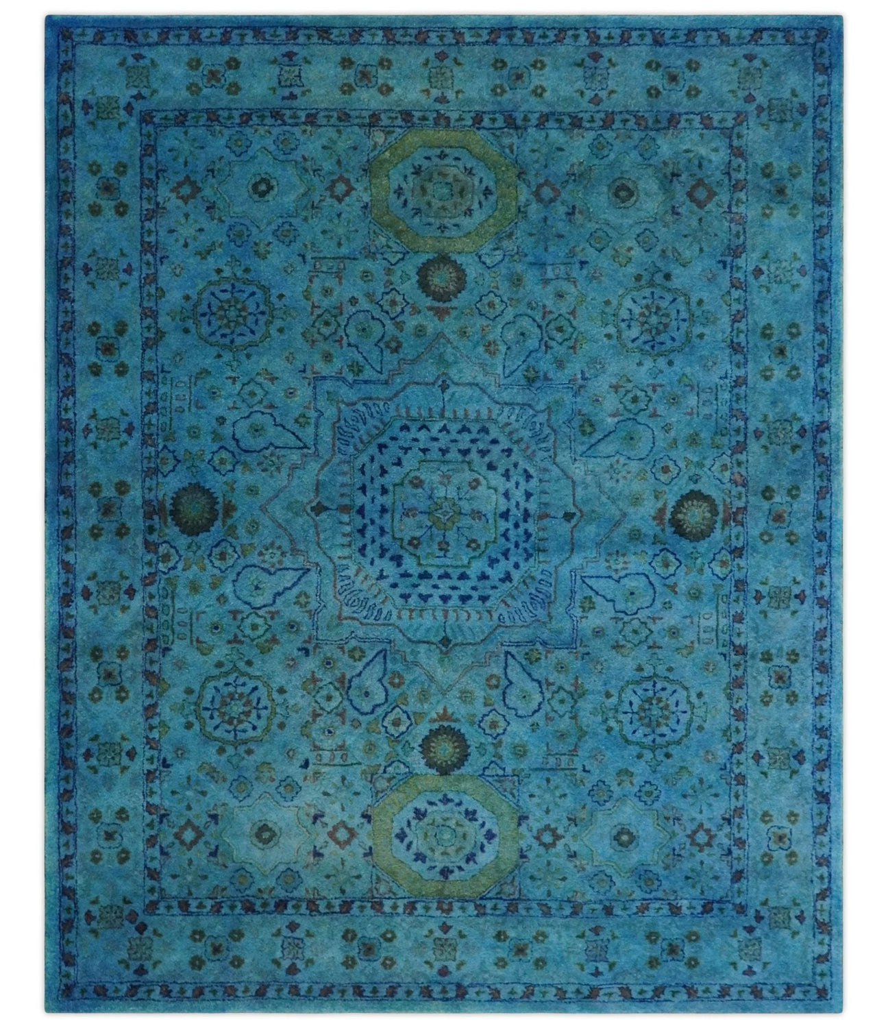 Antique look Traditional Mamluk design Hand Tufted Blue Overdyed Custom Made Wool Area Rug