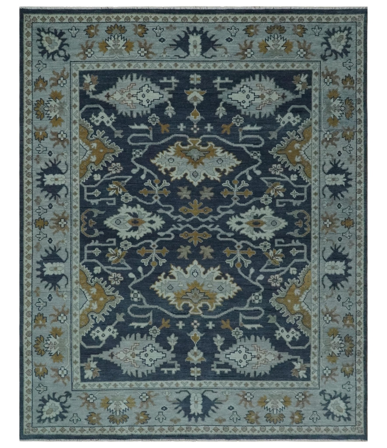 Antique style Blue and Silver Traditional Multi Size Hand Knotted Oushak Wool Rug