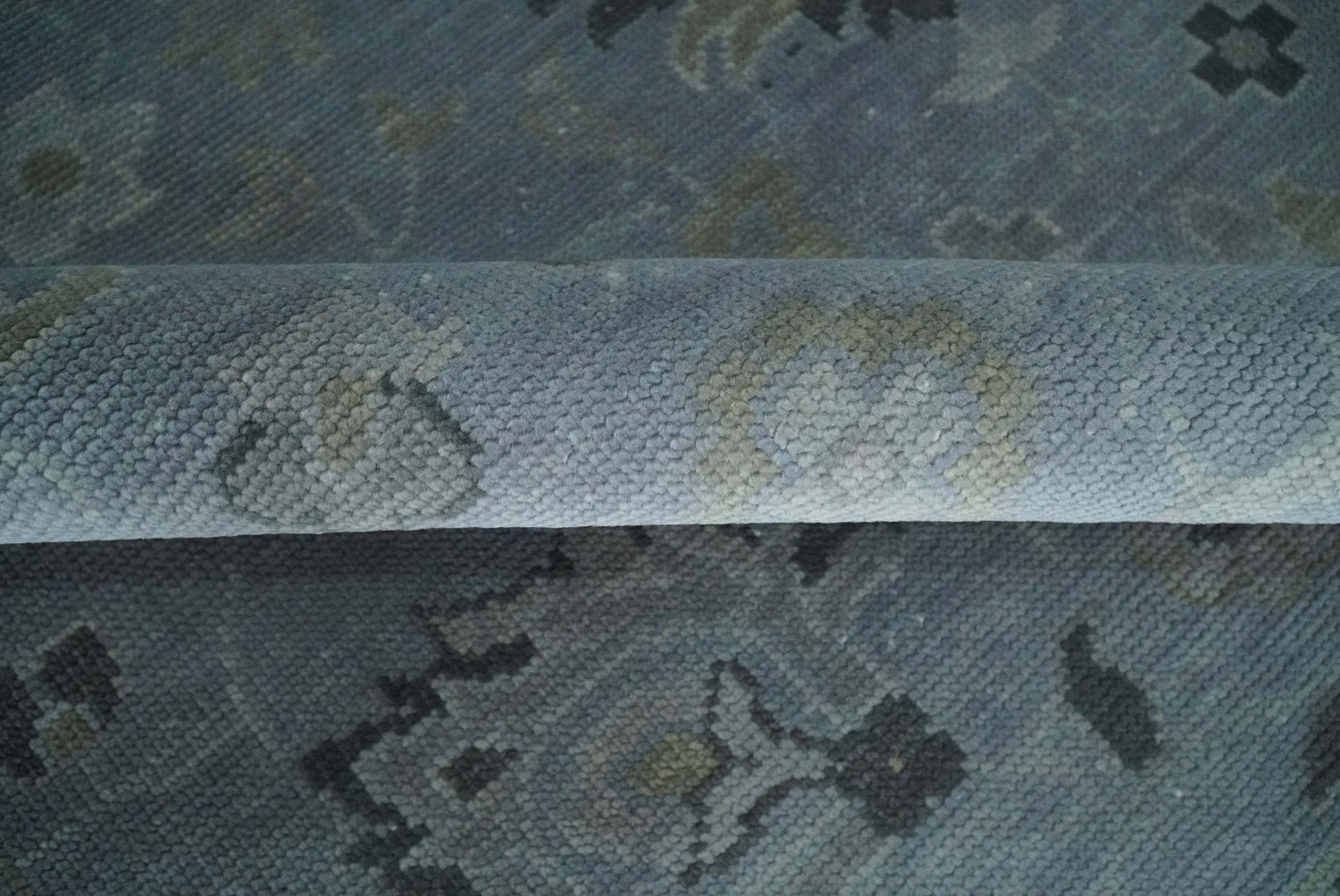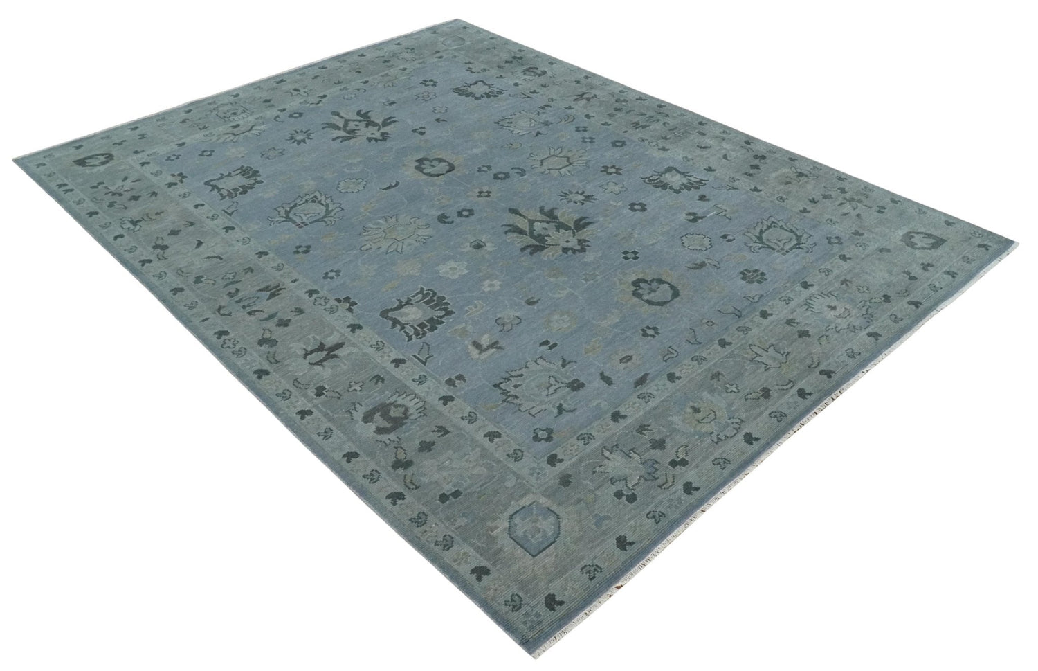 Antique style Blue, Silver and Charcoal Hand Knotted Oushak Wool Area Rug