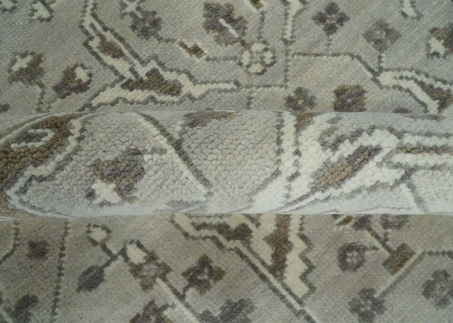 Antique Style Custom Made Traditional Silver and Brown Oriental Oushak Wool Area Rug