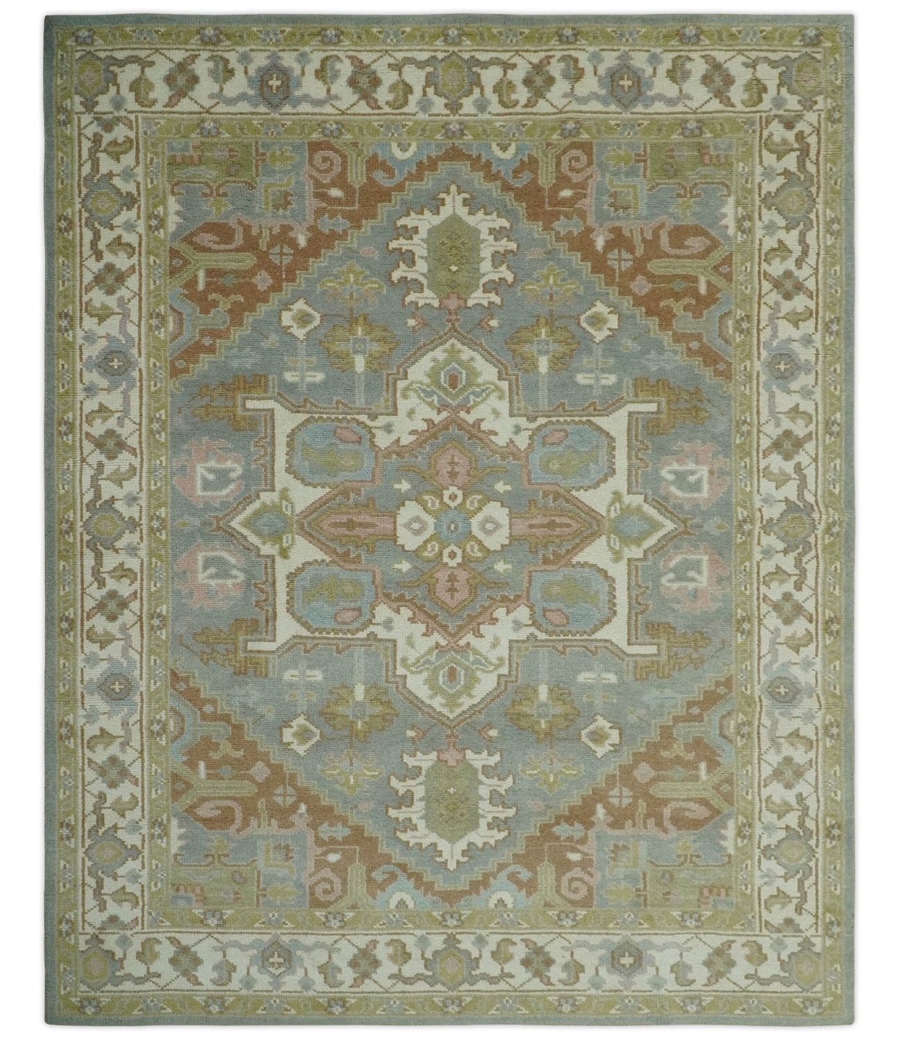 Antique Style Traditional Heriz Gray, Ivory, Peach and Olive Hand Knotted Multi Size wool Area Rug