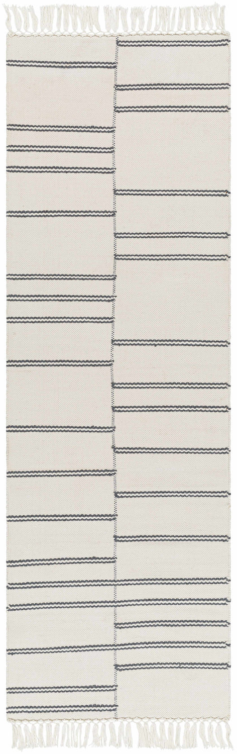 This beautiful Aras Area Rug offers a charming cottage style to any room. Its hand woven construction from recycled PET yarn ensures it is both eco-friendly and durable. The no pile design is perfect for areas with high foot traffic, while the fringe adds a unique touch of texture. It was made in India and requires spot cleaning only for easy maintenance. To extend its lifespan, we recommend using a rug pad underneath. Get this stylish rug today and add an inviting atmosphere to your home!