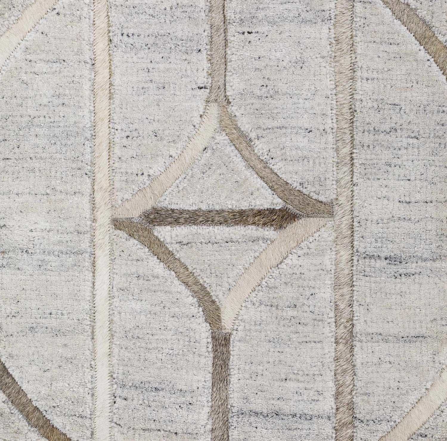 This Ardahan Area Rug is the perfect way to add modern style to any room. Crafted in India with a combination of Viscose and Leather, this high/low no-pile rug offers an eye-catching design that will bring your space to life. It's hand crafted construction ensures years of use and enjoyment. For best results, we recommend using a rug pad for extra cushioning and stability (sold separately). To keep it looking its best, professional rug cleaning is recommended.