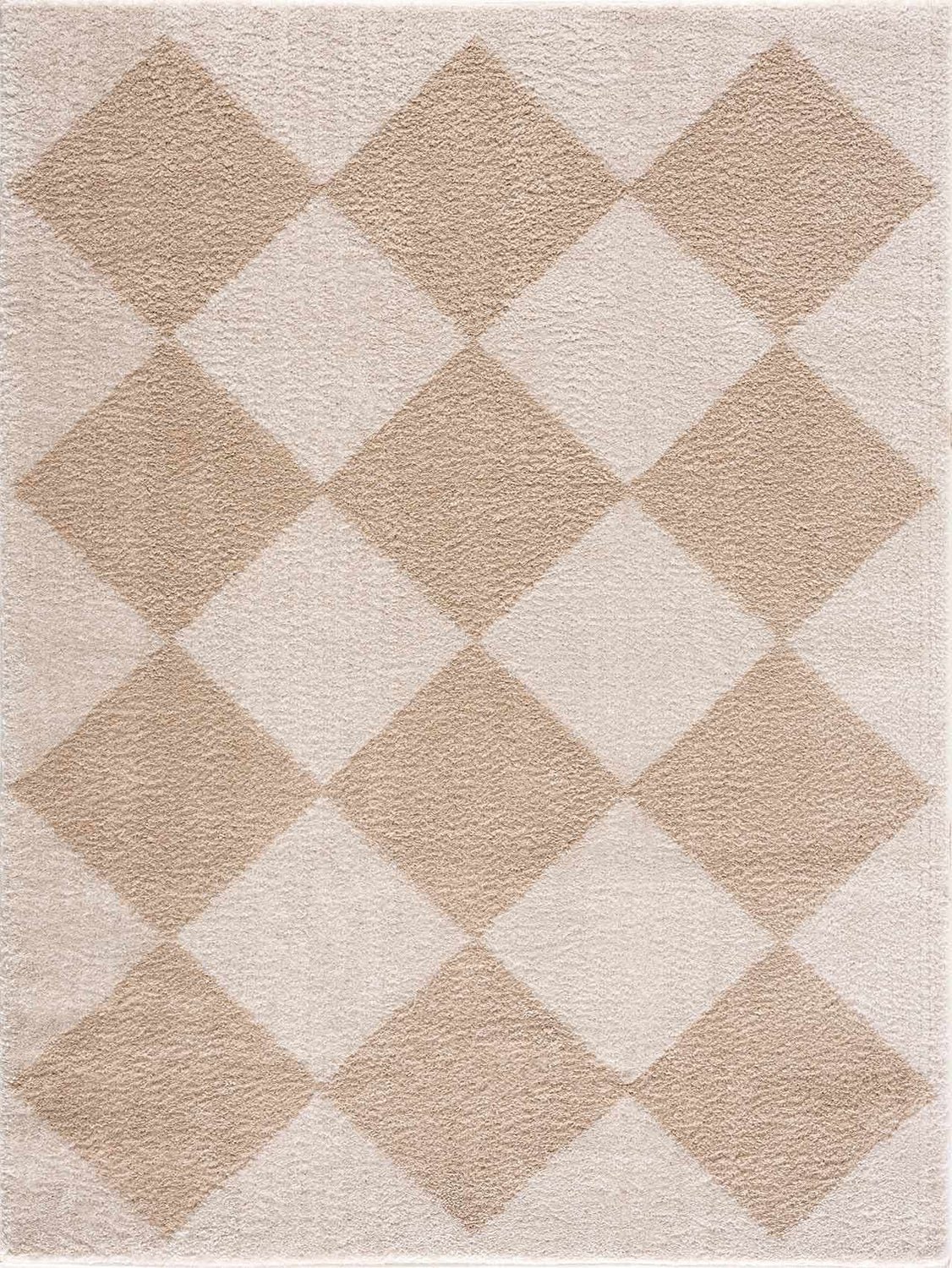 Experience the plush elegance of the Arilla Beige Washable Diamond Area Rug, a stylish addition to any decor with its Art Deco Modern design. Expertly machine woven in Turkey from luxuriously soft and durable polyester, this rug boasts a high pile that feels like pure indulgence underfoot. Ideal for use with a rug pad for added comfort and longevity, it's also easy to care for; simply machine wash cold on a delicate cycle, avoid bleaching, and lay flat to dry. This exquisite area rug is more than just an accessory; it?s a statement piece that will provide a stunning visual impact in your home or office.