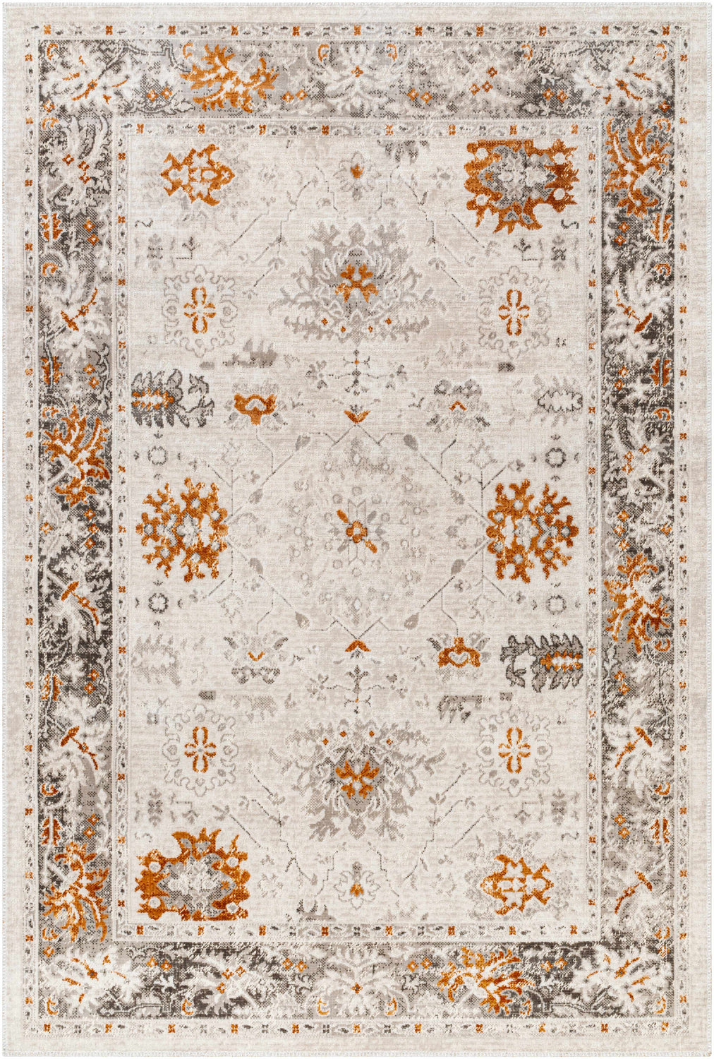 This Arwel Cream & Rust Washable Area Rug is sure to bring classic charm and timeless style into your home. With a traditional design, this machine woven polypropylene rug will lend an air of sophistication to any room in your house. The low pile construction makes it easy to maintain and perfect for high traffic areas. For an extra layer of cushioning and grip, pair this rug with a quality rug pad. This durable piece is made in Turkey and will be the perfect finishing touch for your home decor.