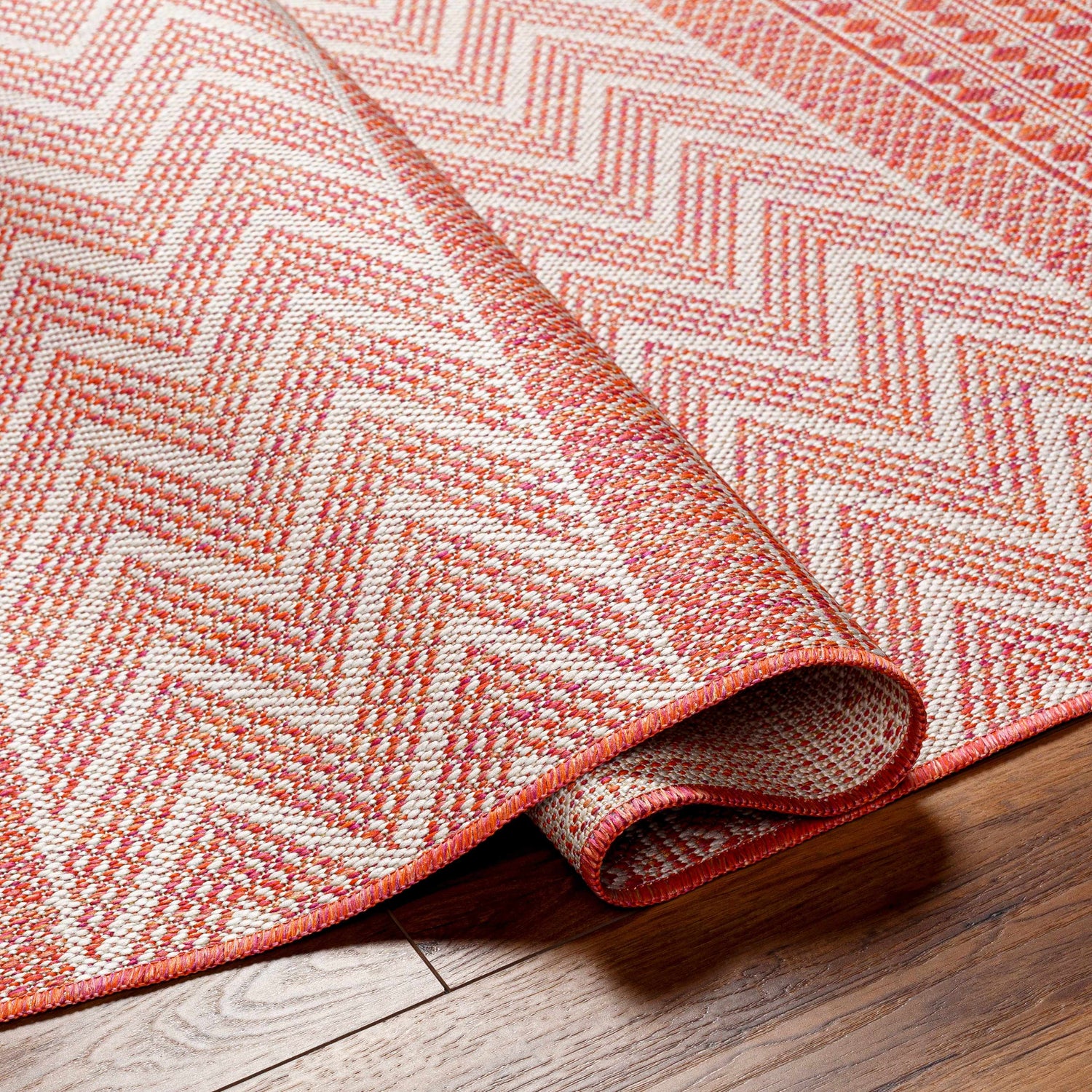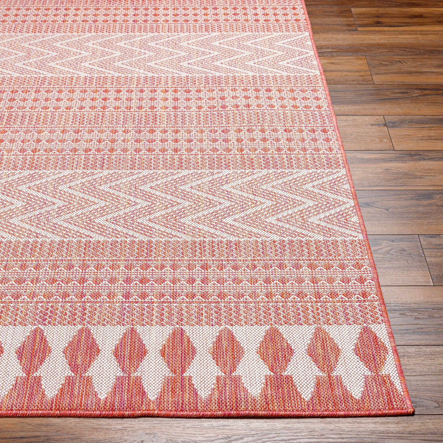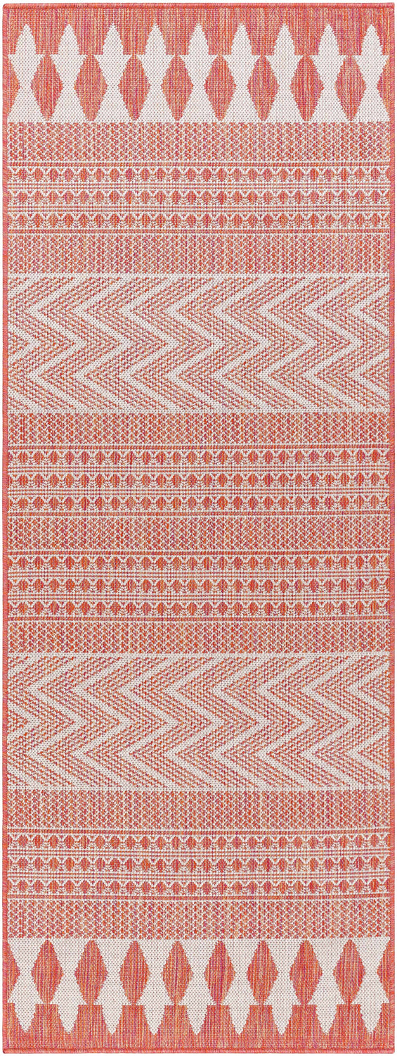 Vibrant orange Moroccan geometric pattern meets outdoor-tough polypropylene — the Asif rug is stain resistant, pet friendly, and bold enough to anchor any space inside or out.