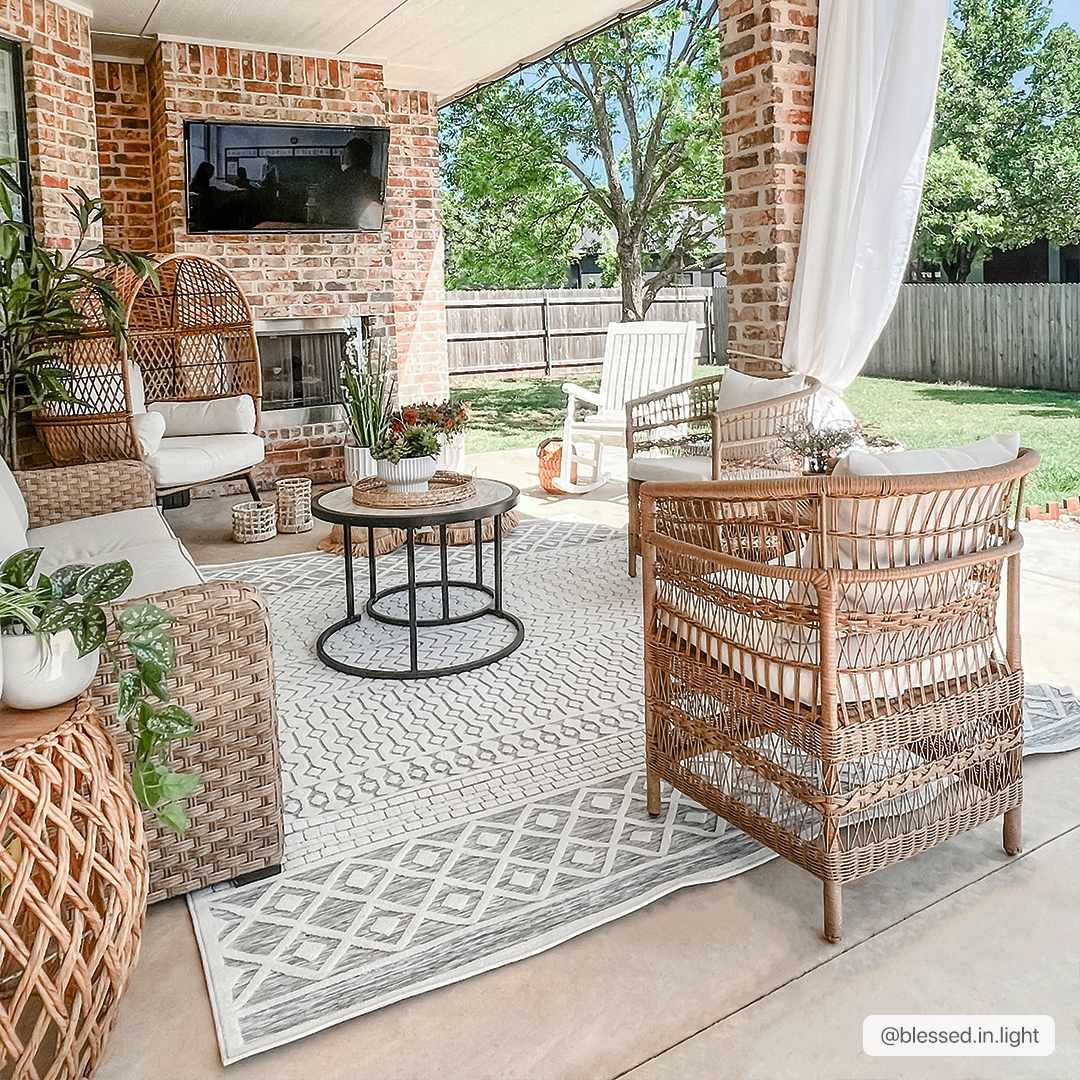 For outdoor spaces like patios or decks, select a rug that complements the size of your seating area, leaving enough space around the furniture to create a well-defined and inviting look. Opt for weather-resistant materials to ensure durability.