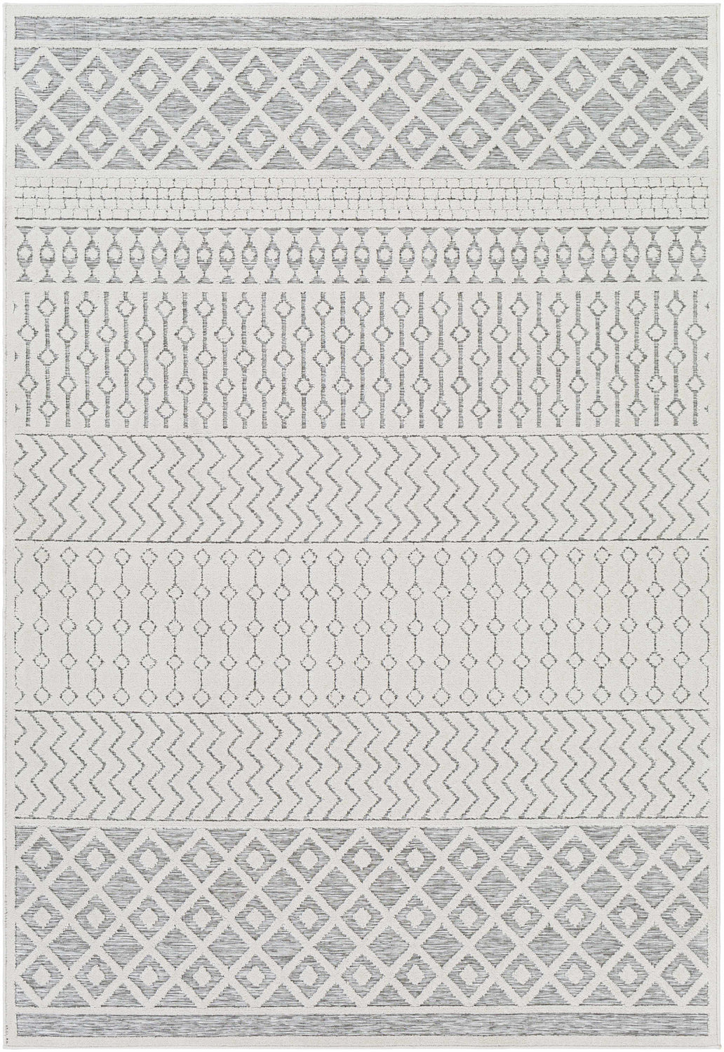 The Asquith Outdoor Rug Collection features compelling global inspired designs brimming with elegance and grace! The perfect addition for any home, these pieces will add eclectic charm to any room! The meticulously woven construction of these pieces boasts durability and will provide natural charm into your decor space. Made with Polypropylene in Turkey, and has Low Pile.
