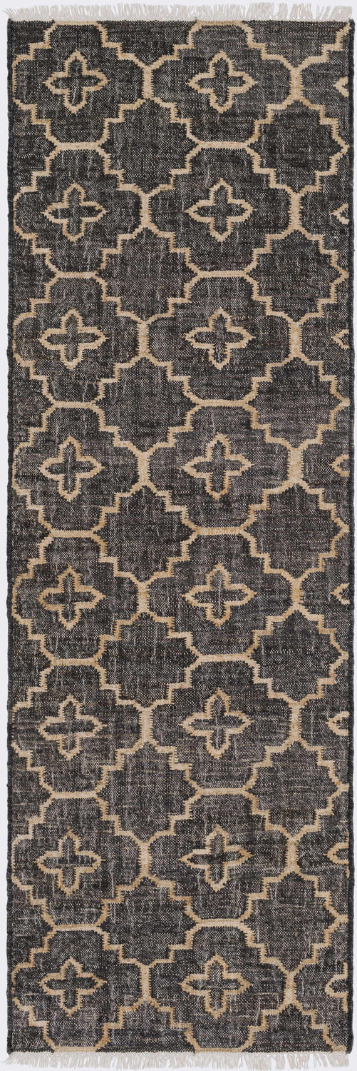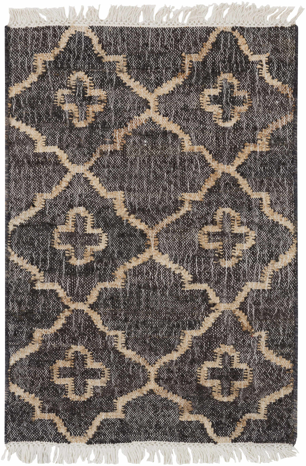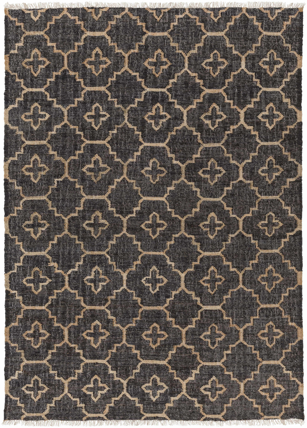 Astoria Black&Tan Trellis Fringed Jute Carpet - Clearance