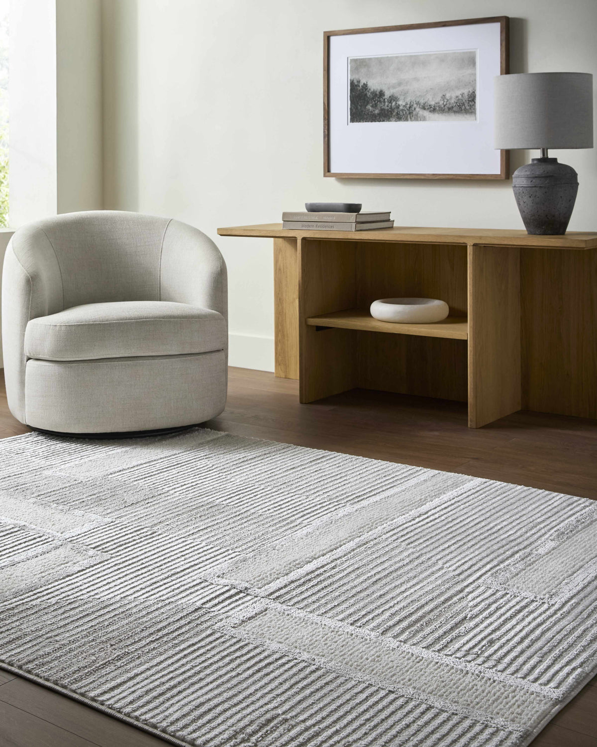 When selecting a living room rug, choose one that anchors your furniture by either placing all the legs on the rug or just the front legs, which helps define the seating area and enhances the room’s acoustics.