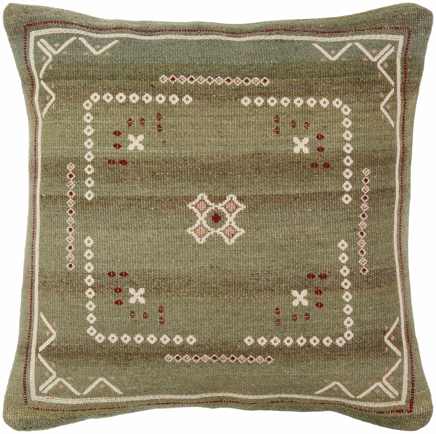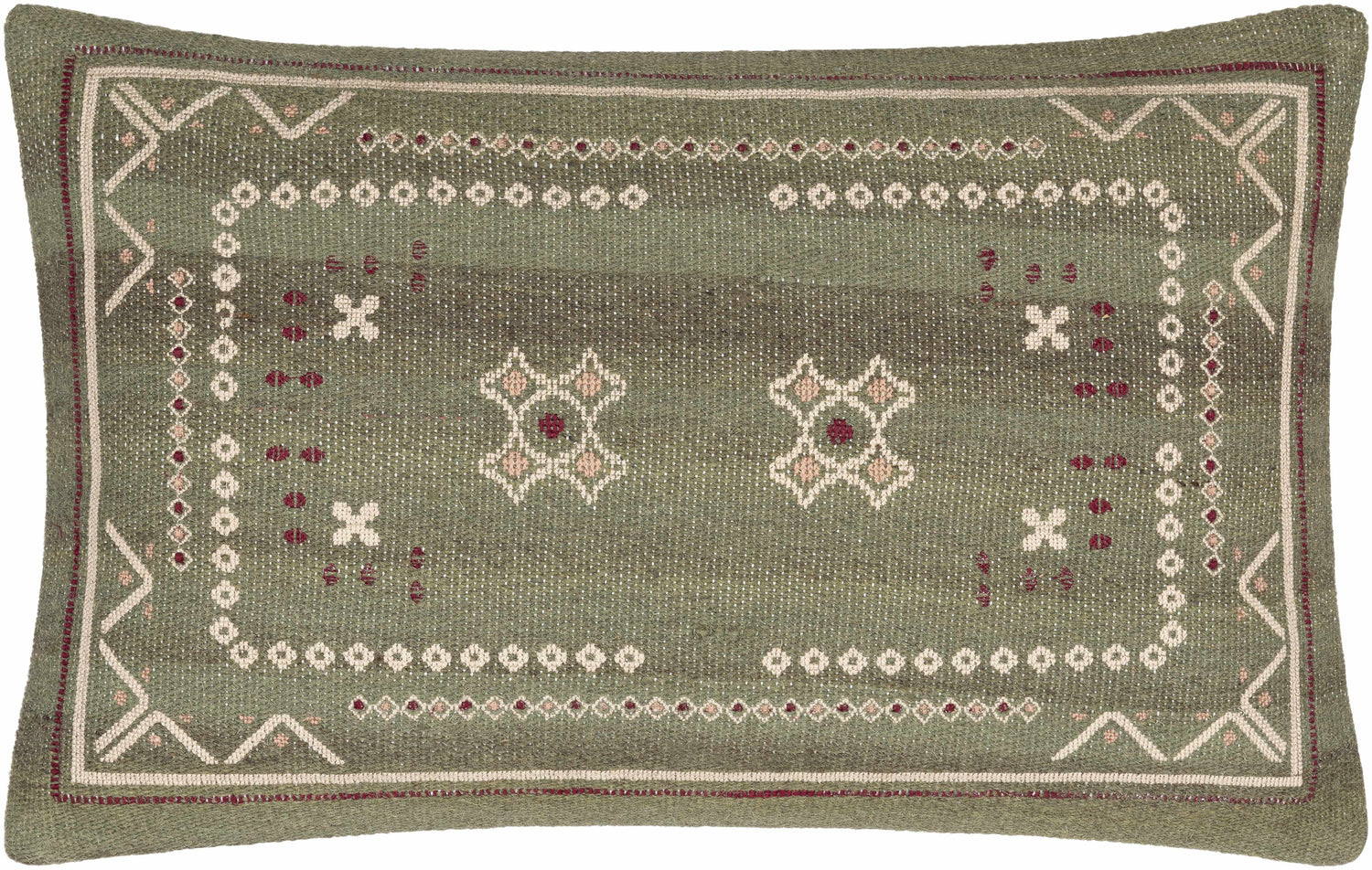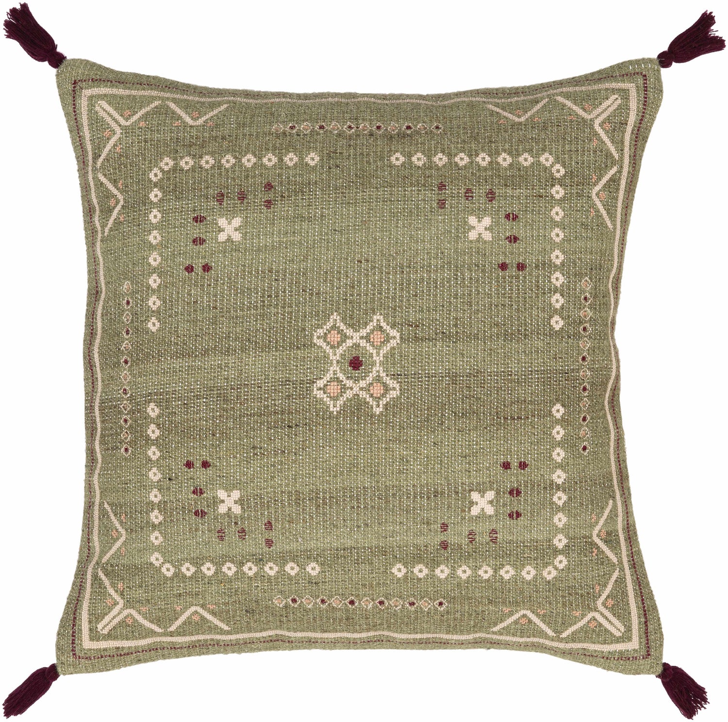 Savera Dusty Sage Organic Woven Textured Global Bohemian Wool Accent Pillow with Knotted Tassels