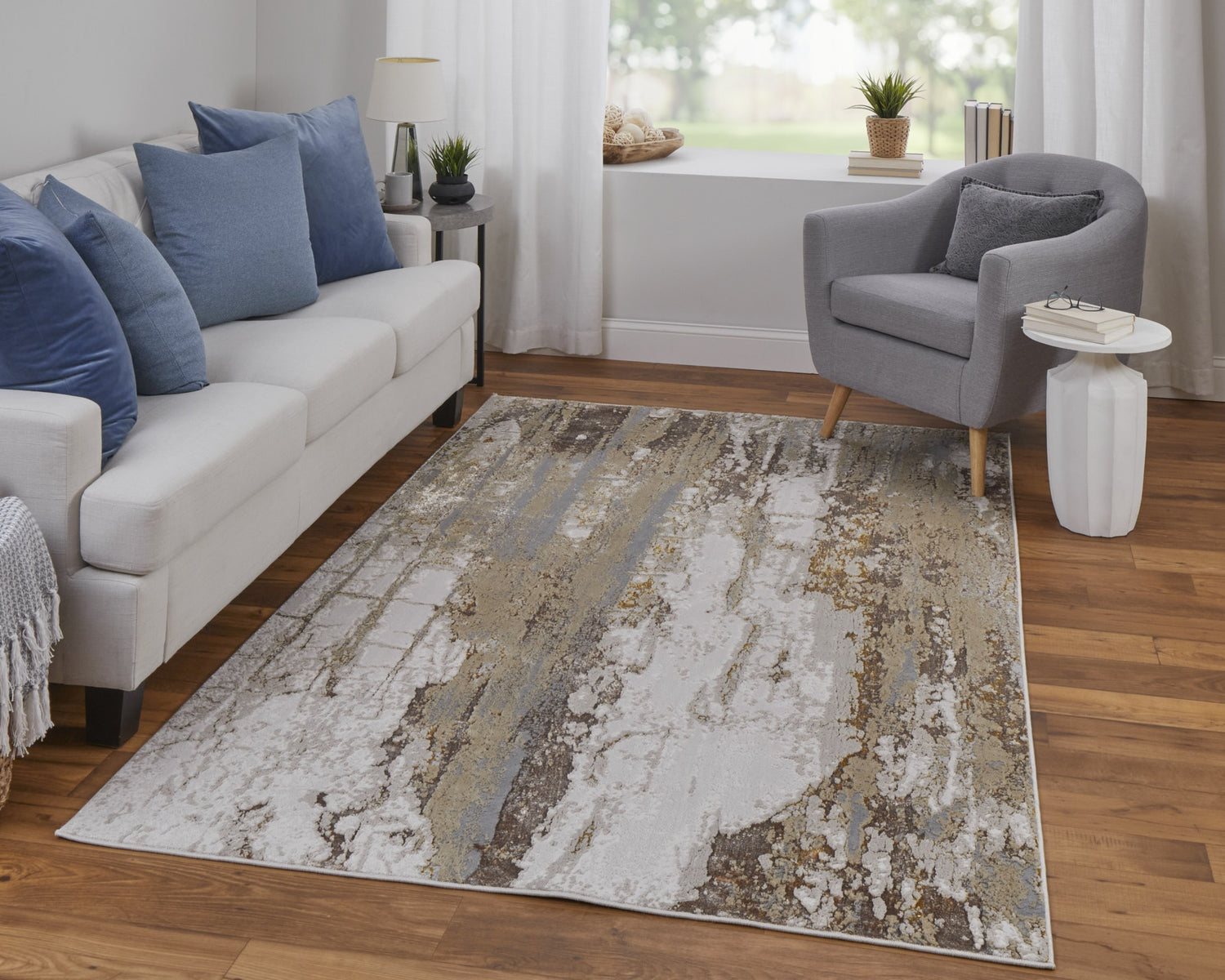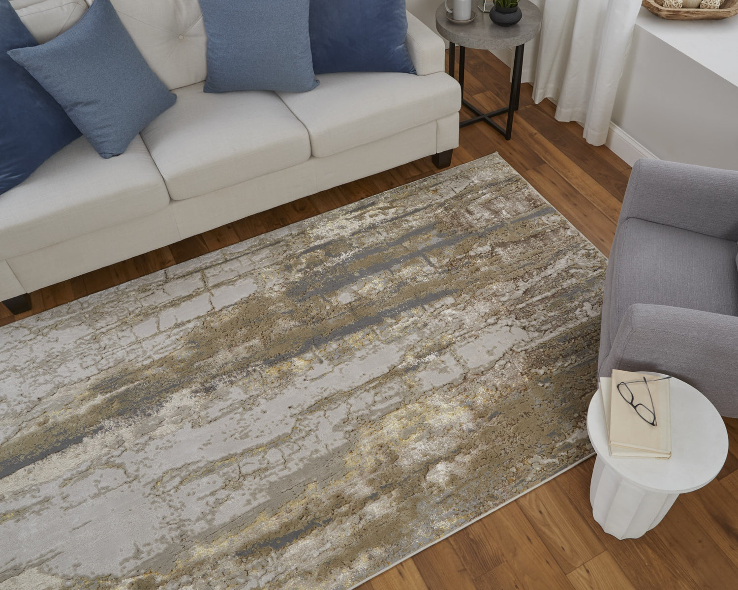 Feizy Aura Modern Abstract - Ivory/Gold/Brown Area Rug