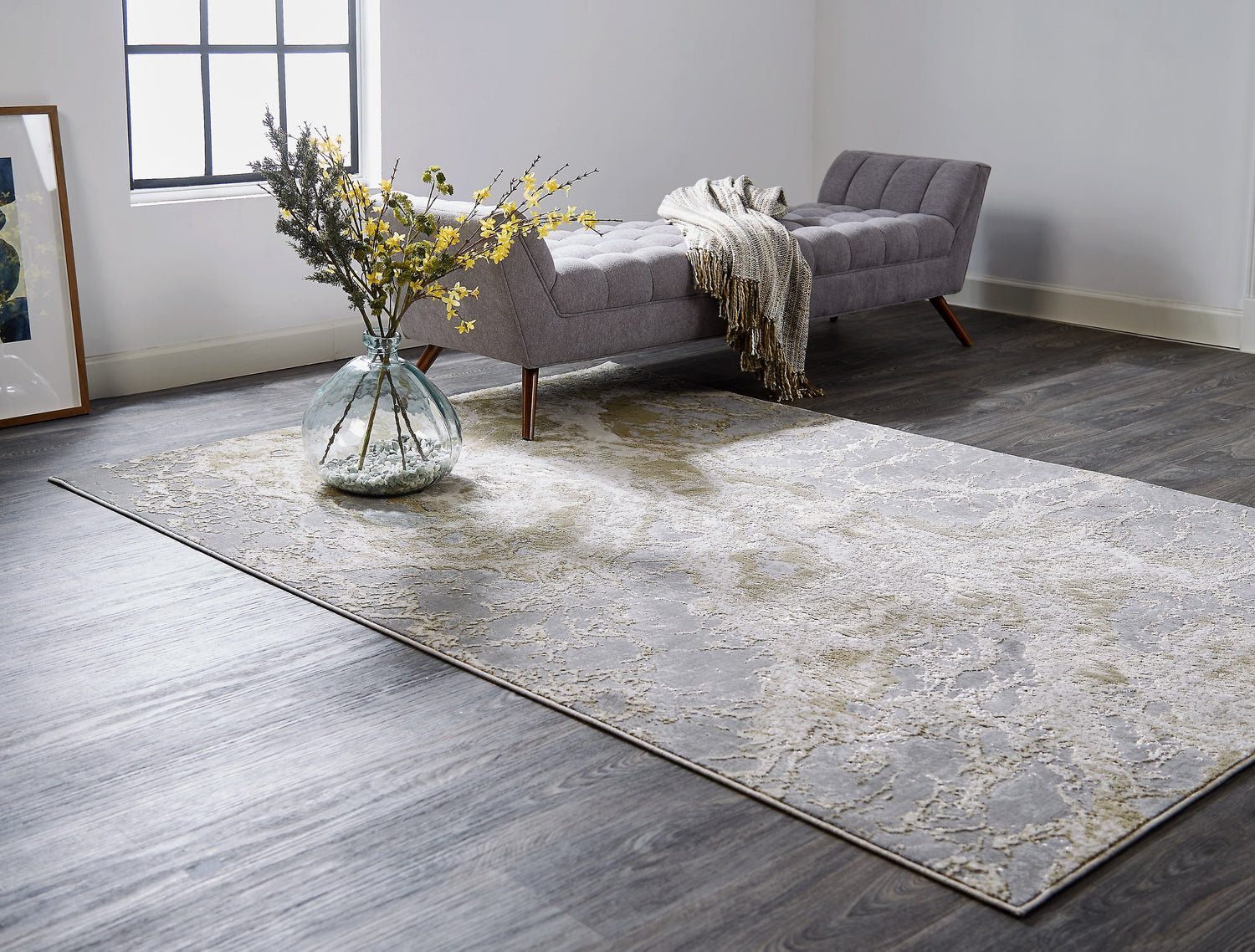 Feizy Aura Modern Abstract - Ivory/Silver/Gold Area Rug