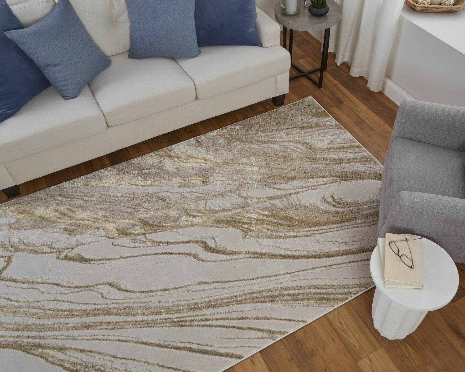 Feizy Aura Modern Abstract - Ivory/Taupe/Gold Area Rug