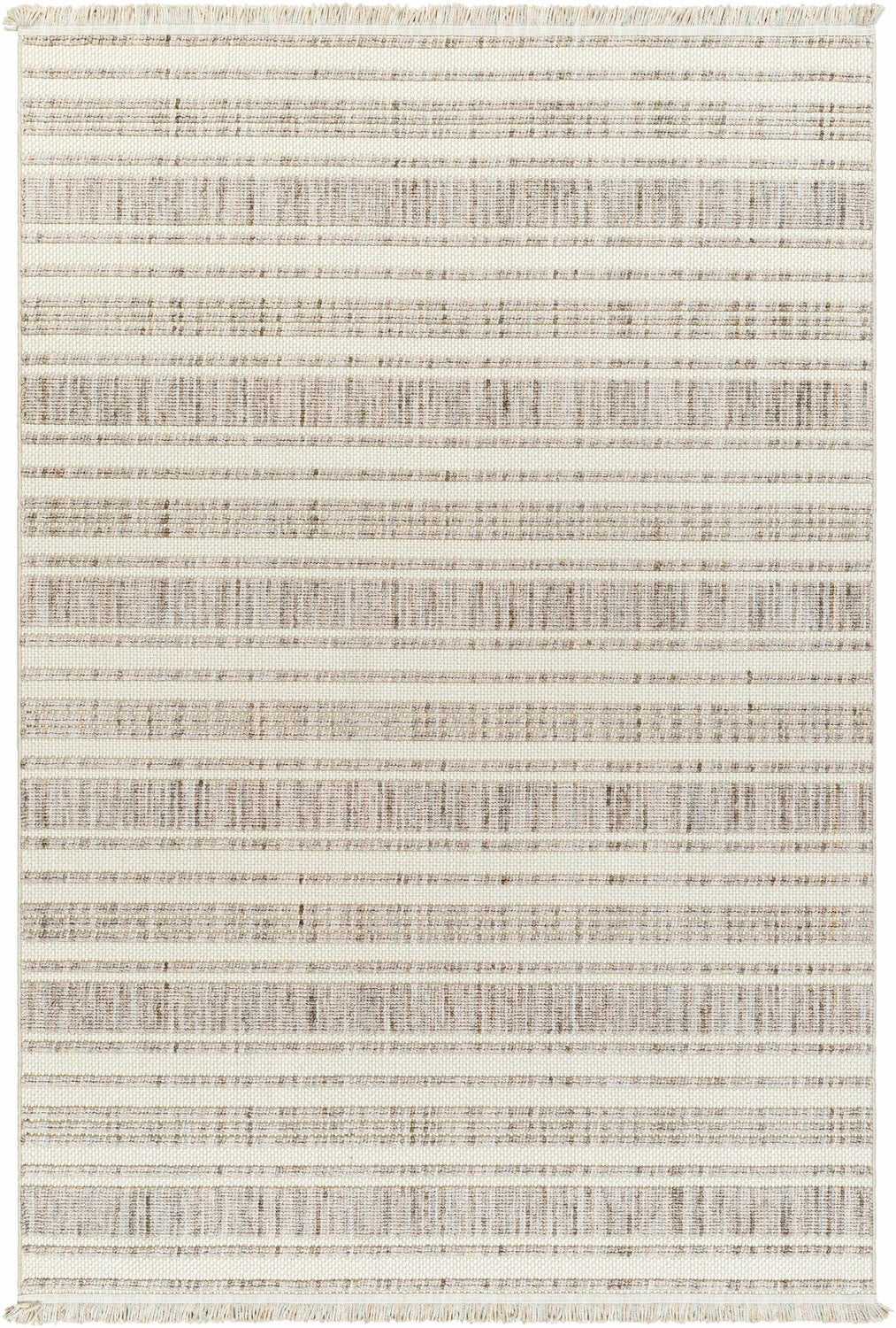 This Avari Area Rug brings global style to your home. Its low pile and machine-woven construction make it perfect for high traffic areas of the home. This Polyester rug features a fringe, adding an eye-catching detail to the design. Made in Turkey, this piece is sure to bring a unique touch to your living space. For added comfort and durability, use with a rug pad (not included).
