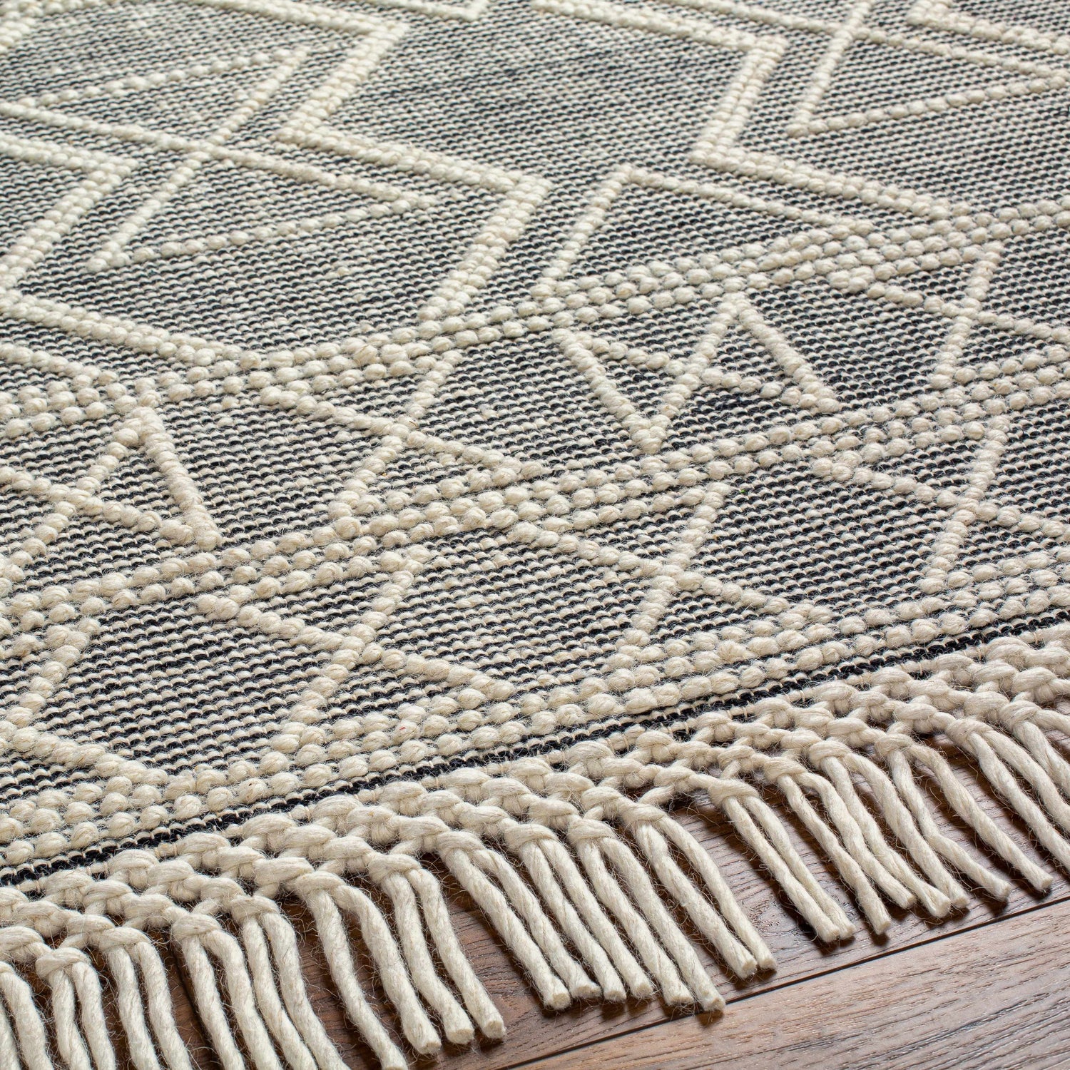 This gorgeous Aziel Area Rug will add a touch of classic cottage style to your home. This hand-woven polyester and wool blend is durable, making it perfect for high traffic areas. The no-pile construction ensures easy maintenance and makes it a great choice for families with pets. Made in India, this rug will bring beauty and elegance to any room in your home. Make sure to purchase a rug pad separately for added comfort and protection.