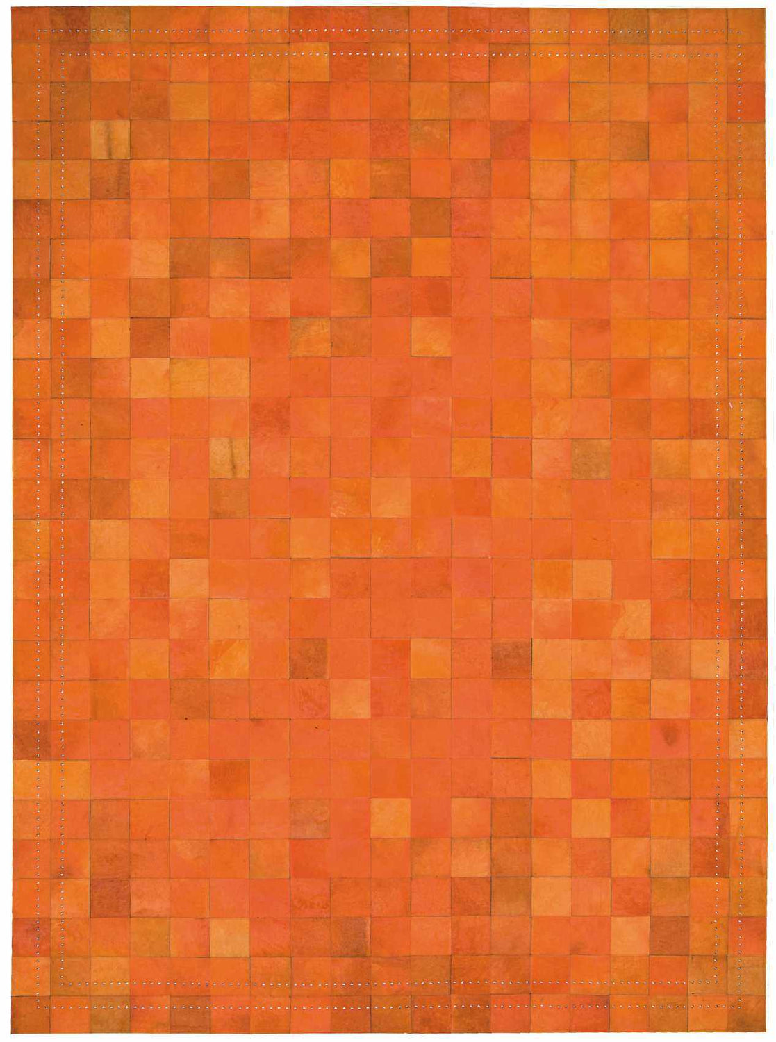 warm paletteAn all-over warm orange palette ranging from bright tangerine to deep burnt orange and earthy rust — each patchwork square shifts slightly in tone, creating a glowing, sun-drenched mosaic effect that feels both bold and surprisingly nuanced.