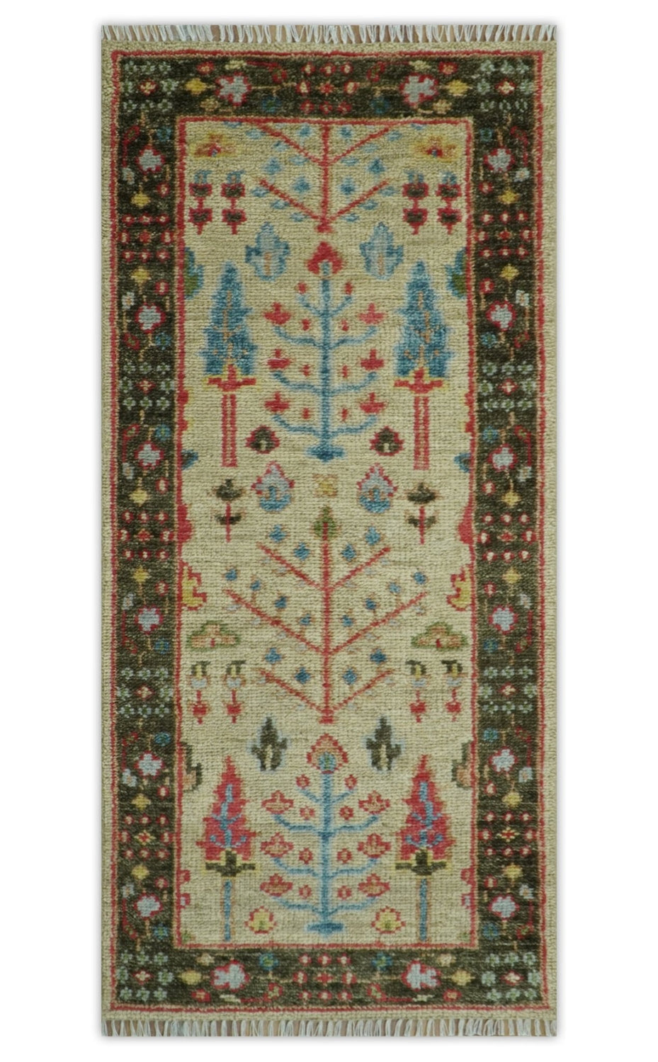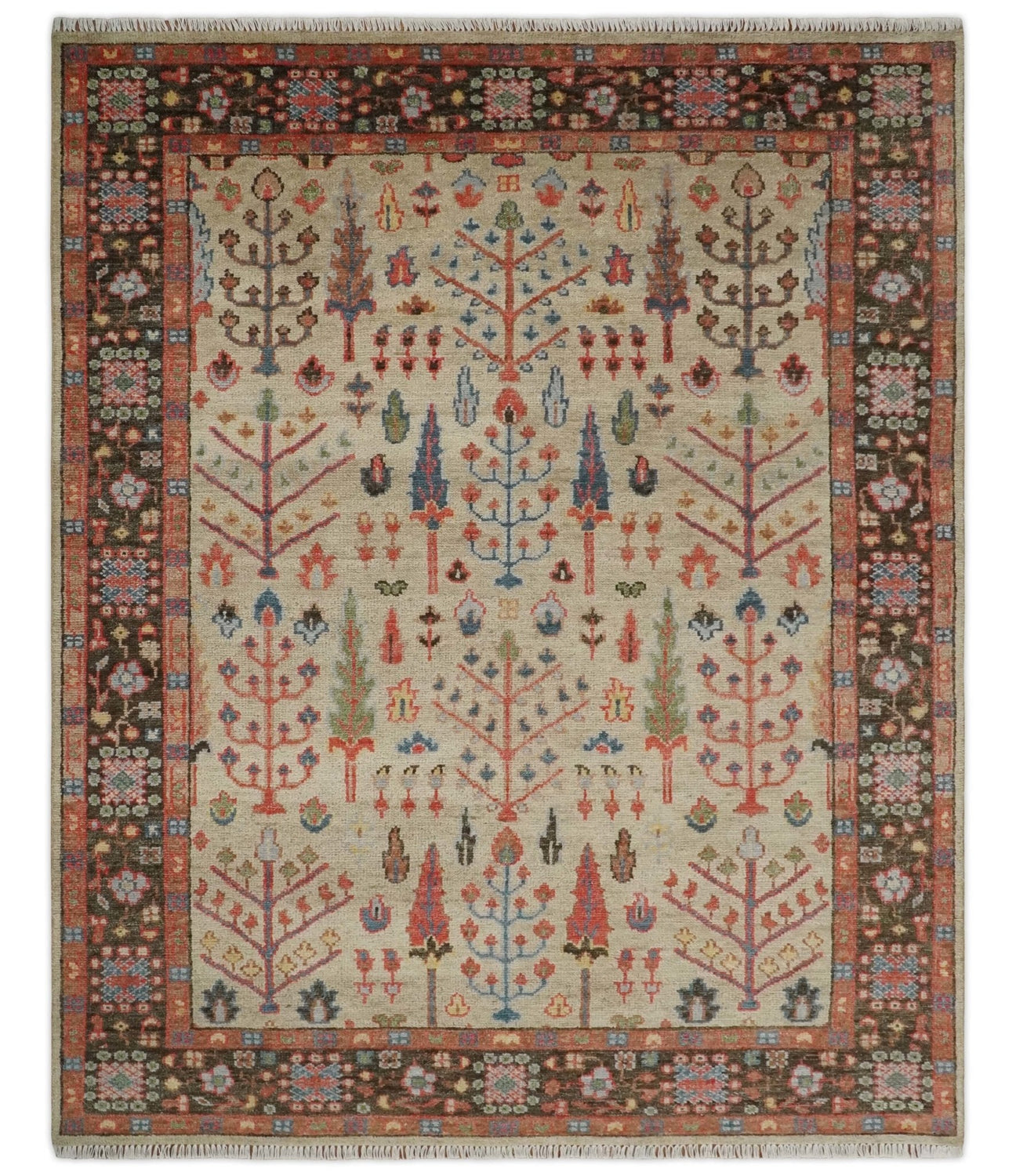 Beige, Brown and Rust Tree of Life Hand Knotted Traditional Multi Size Wool Rug