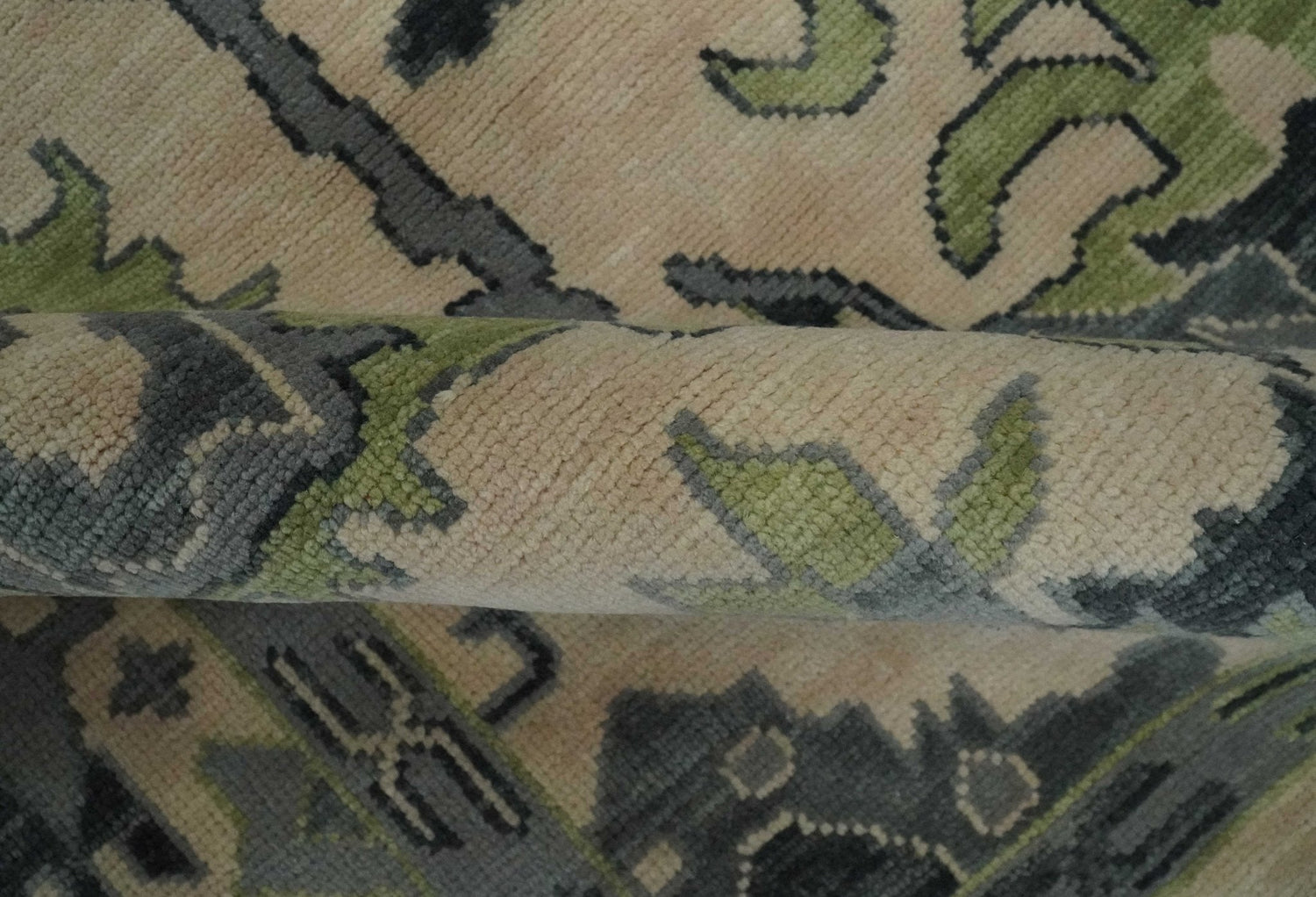 Beige, Charcoal and Green Hand knotted Oushak Traditional Wool Area Rug
