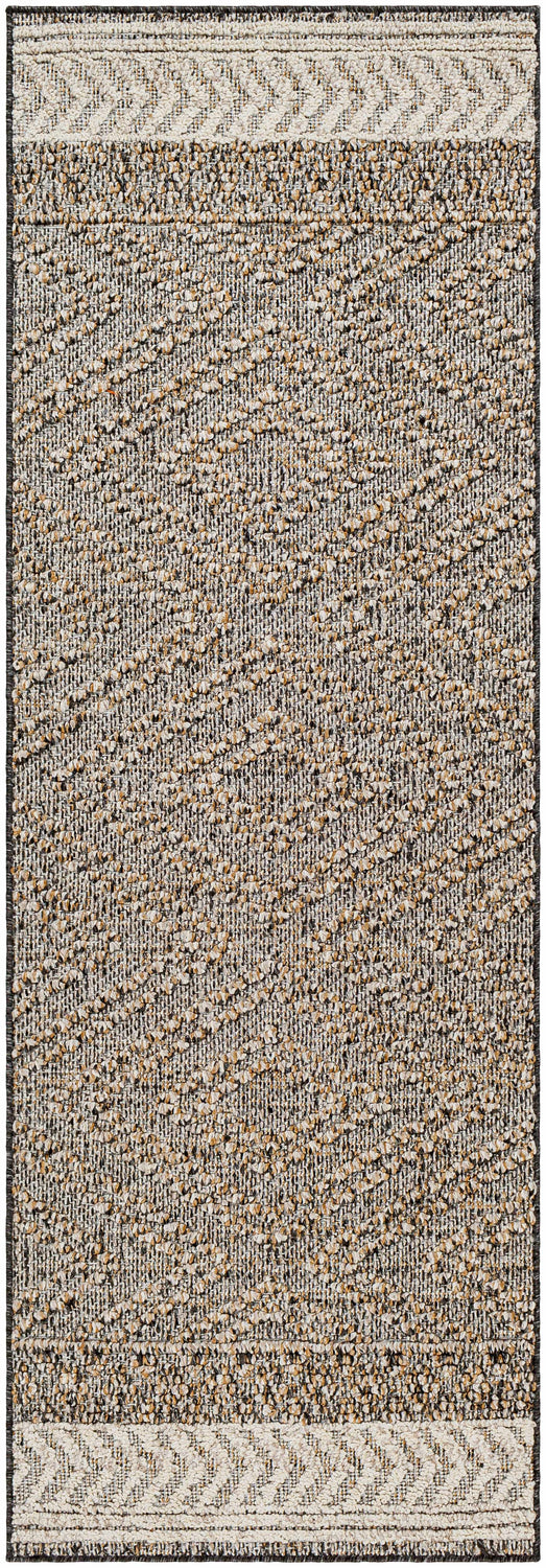 Our Beige Charcoal Areli Area Rug is a perfect addition to any modern home! Constructed from durable polypropylene and machine woven in Turkey, this Scandinavian Modern style rug is designed for even the highest traffic areas. The medium pile ensures comfortability and longevity while the outdoor safe material makes it suitable for use outdoors. We recommend pairing with a rug pad for best results. Cleaning is easy - just hose off as needed! With its unique design and unparalleled durability, the Beige Charcoal Areli Area Rug will be an eye-catching centerpiece of your home for years to come.