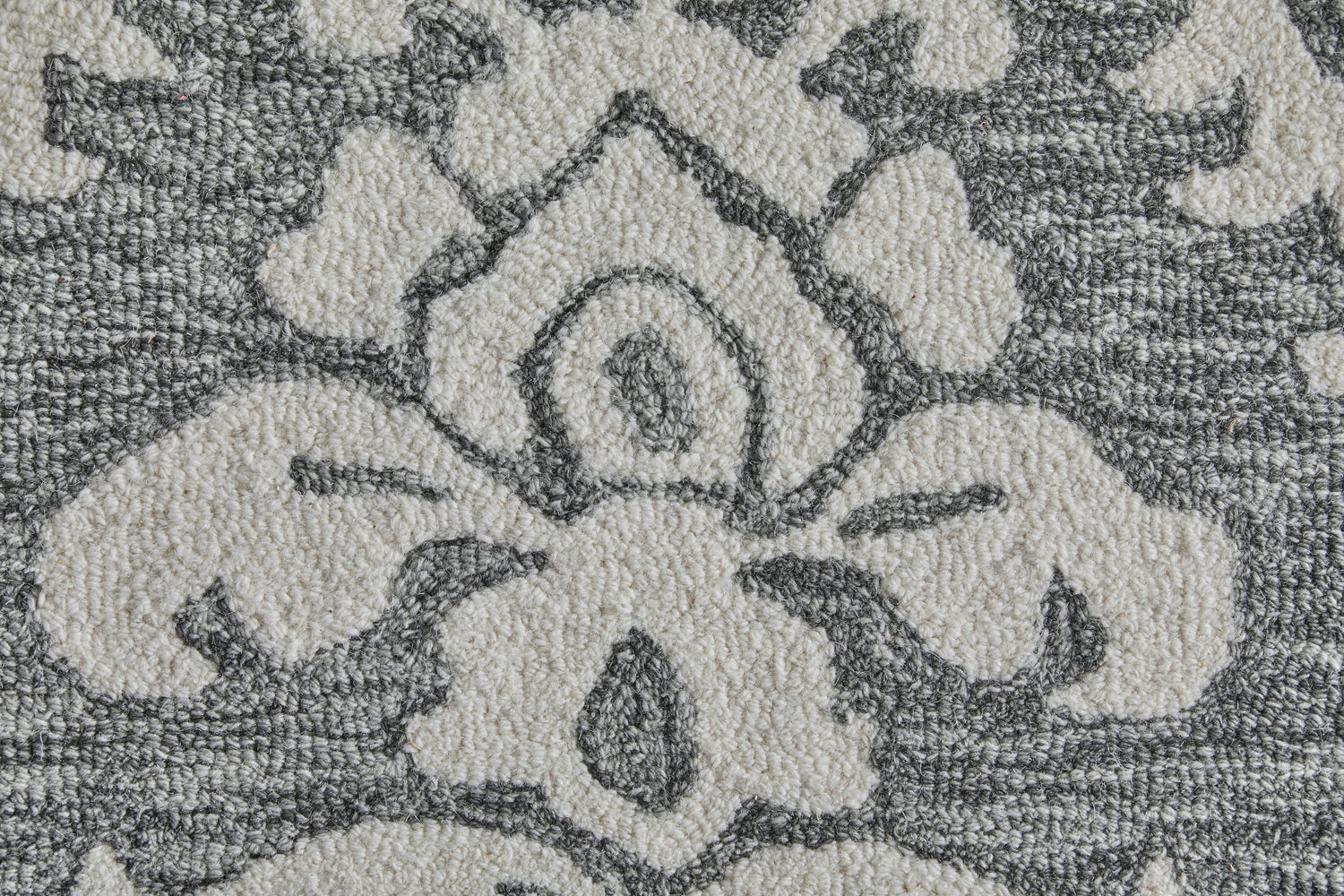 Classic damask elegance in cool gray and ivory — the Feizy Belfort is a handmade wool rug that brings timeless traditional style to any room.
