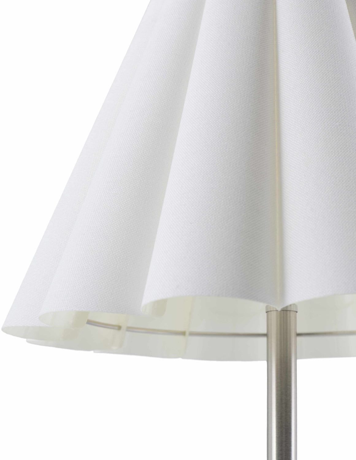 Material: Body: Iron / Base: Iron / Shade (Outside): Linen / Shade (Inside): Polystyrene