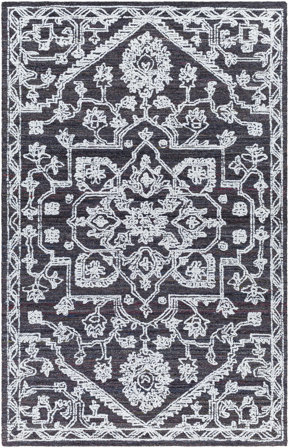 This hand-tufted Black Derya Area Rug is a perfect addition to any traditional style home. Crafted with recycled PET yarn, this medium pile rug is sure to offer comfort and warmth to your living space. With its bold design and intricate detail, this piece will help bring an elegant atmosphere to any room. Made in India, this rug requires a rug pad for best use. Add timeless sophistication and charm to your home with the Black Derya Area Rug!