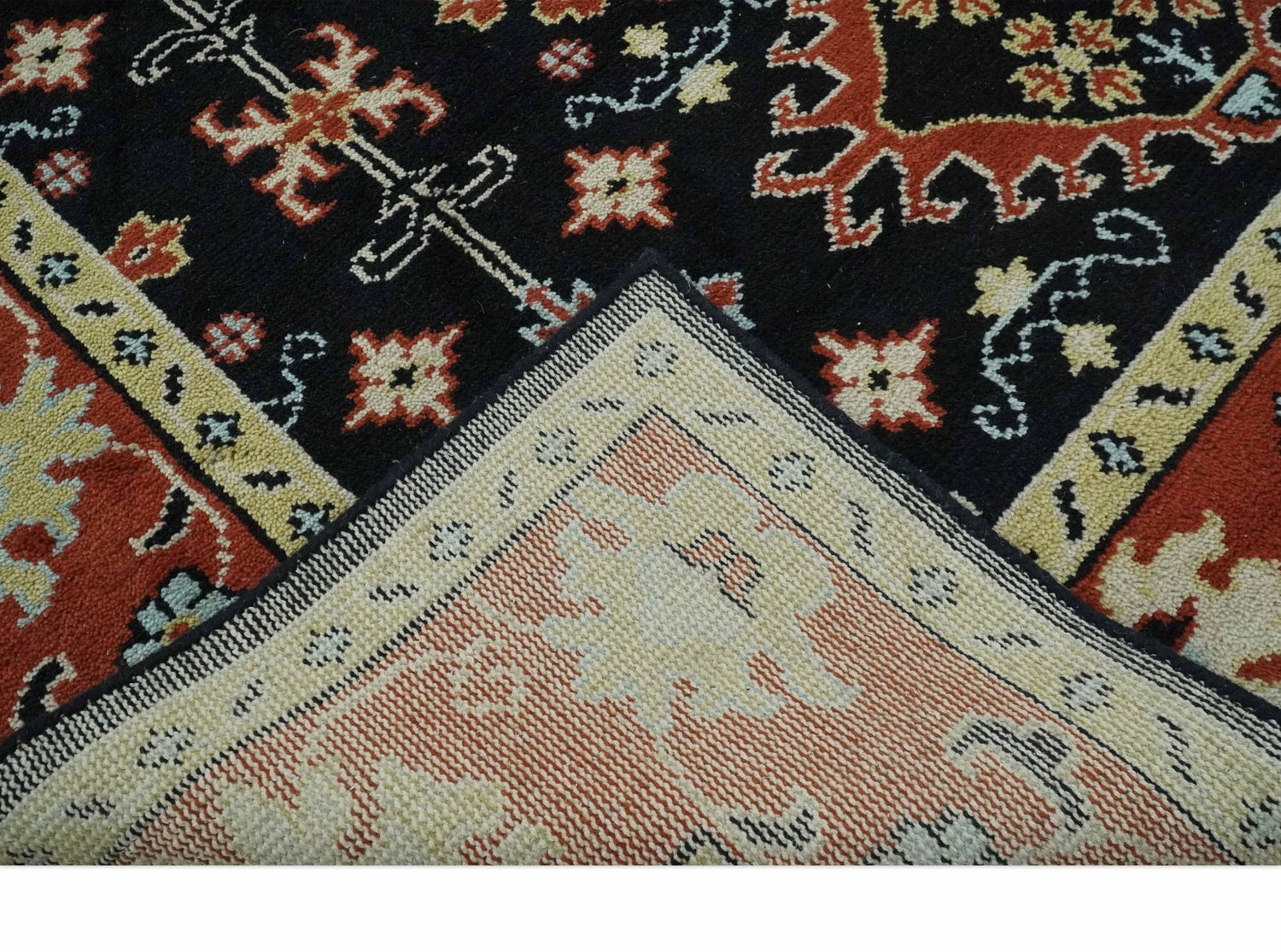 Black, Rust and Beige Traditional Oriental Hand Knotted Custom Made Wool Area Rug
